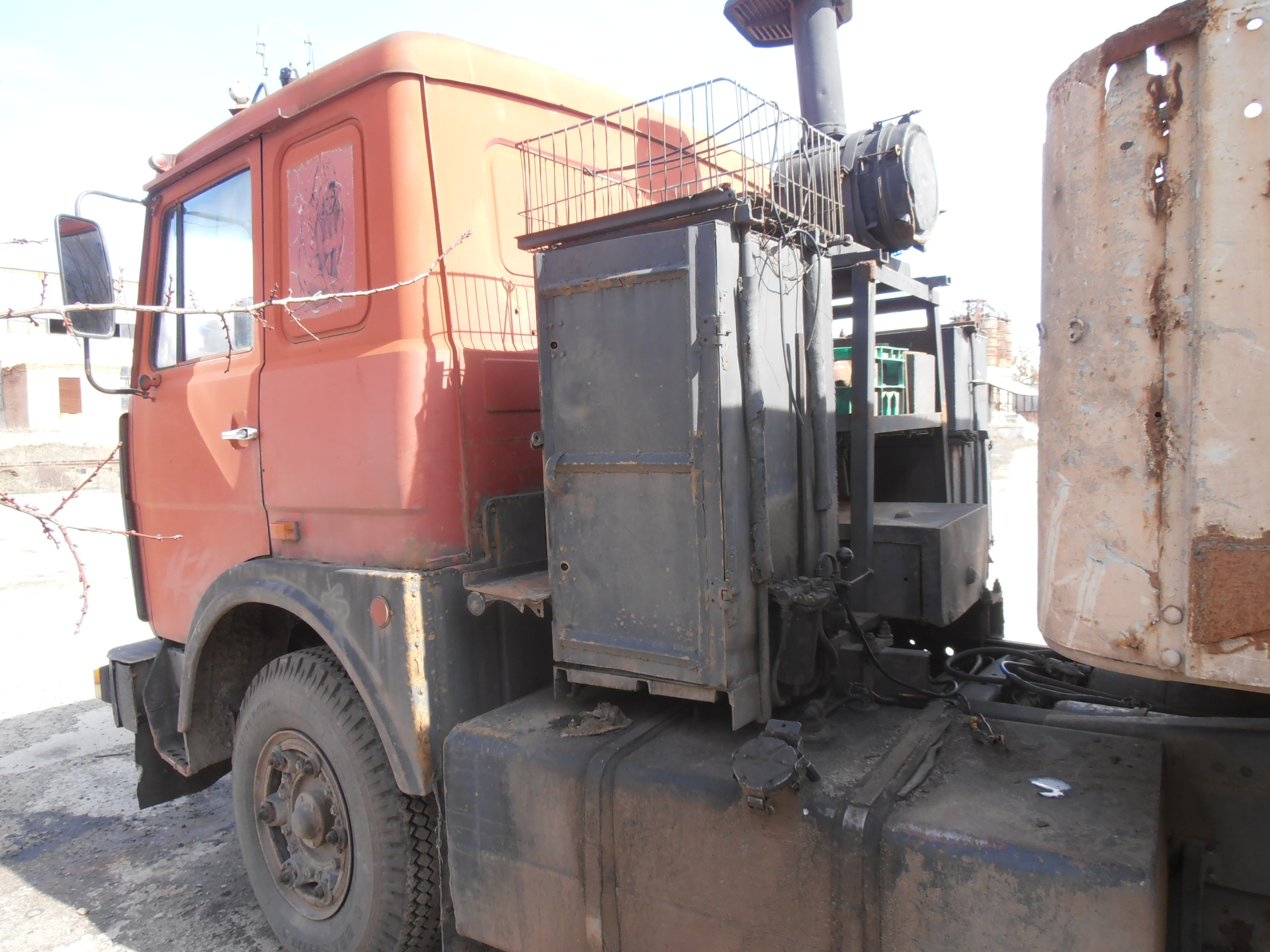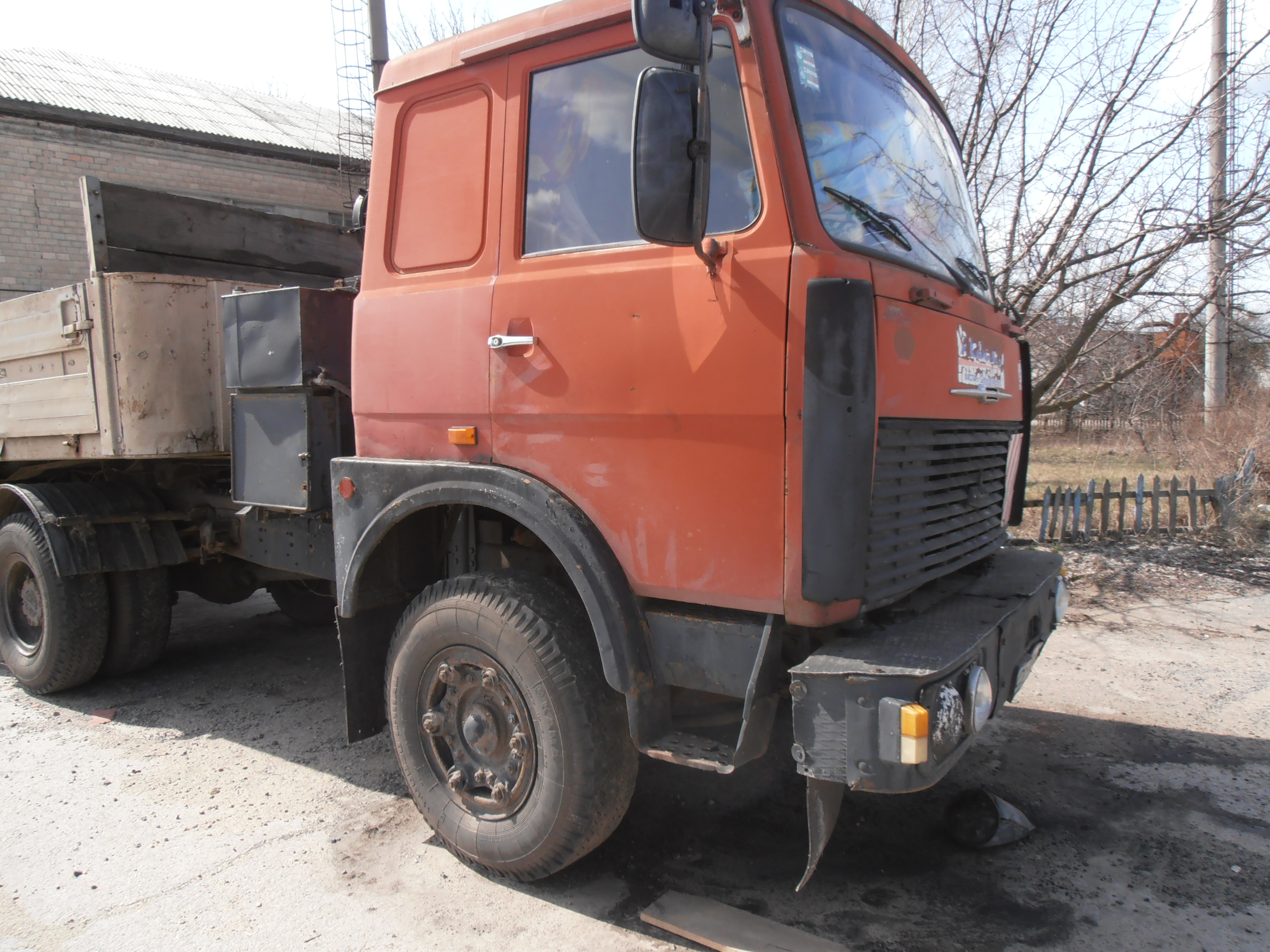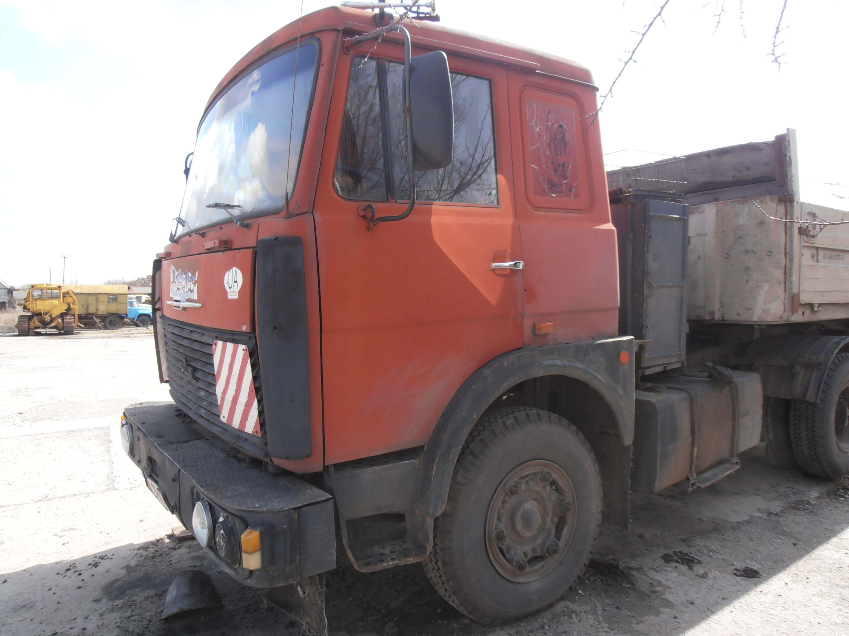 Автомобіль МАЗ 54323, 1990 р.в., д.н.з. СВ9548АА, червоного кольору. Об’єм двигуна – 11150 см.3 Показники одометра – не встановлено. Наявні незначні пошкодження лакофарбового покриття та елементів жорсткості. Стан протекторів шин-задовільний. Загальний стан об’єкту оцінки -добрий