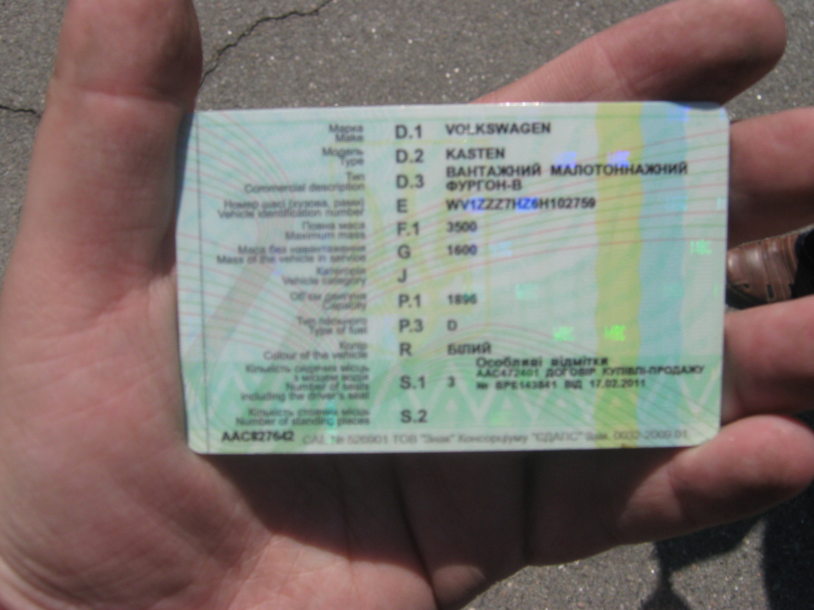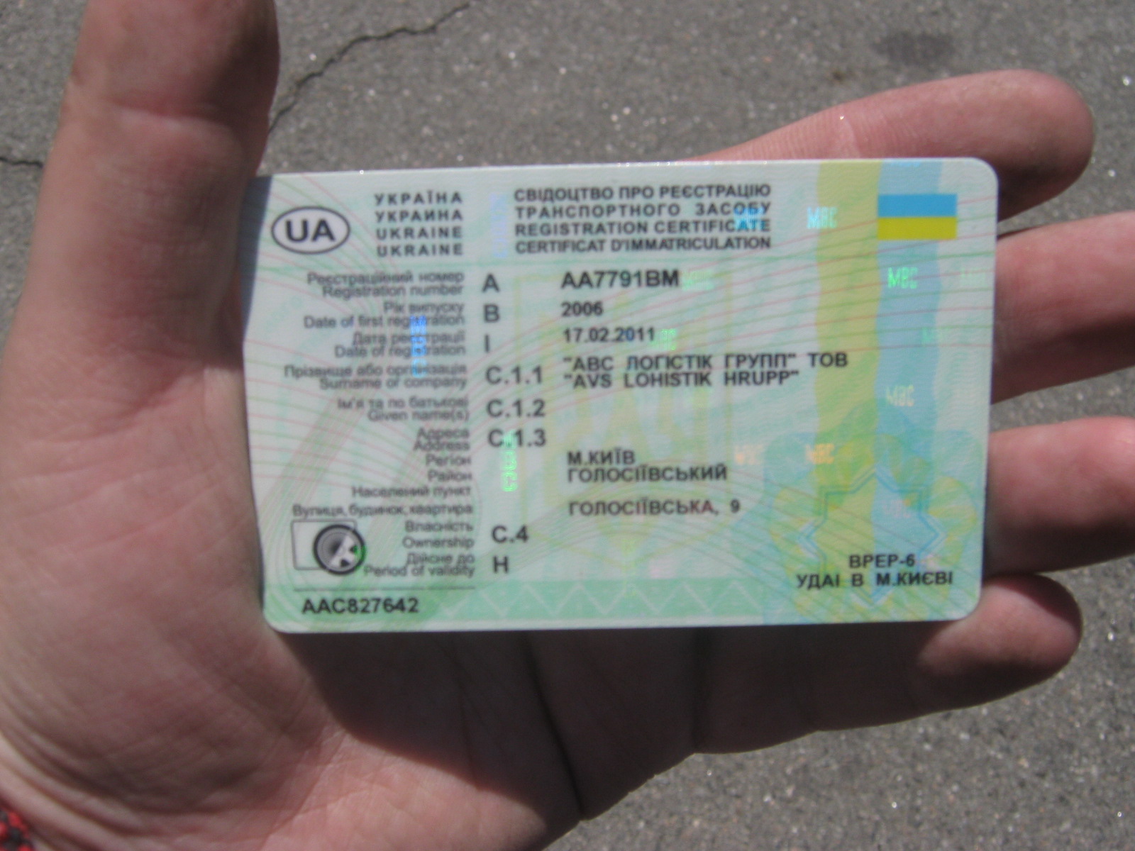 ДНЗ: АА7791ВМ;
