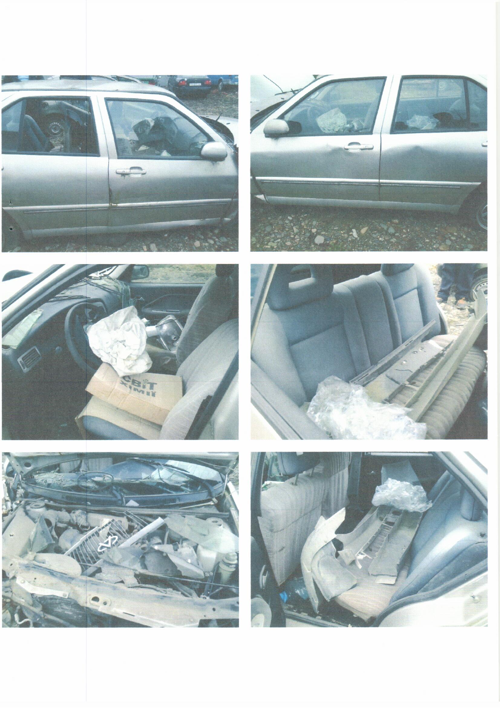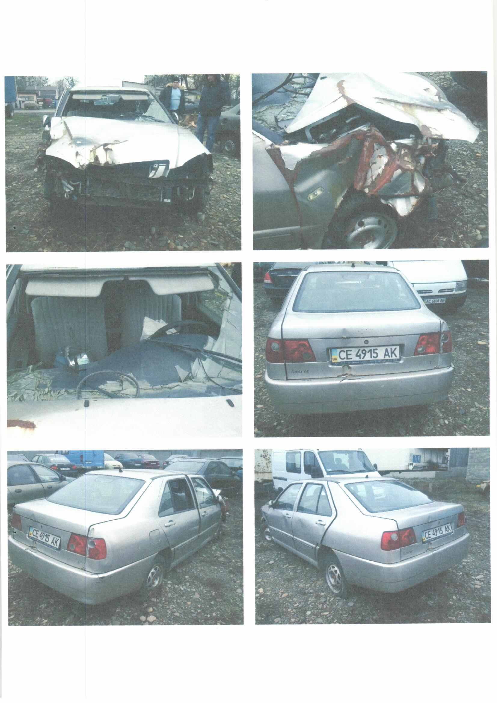 Автомобіль після ДТП, розбите вітрове скло, пошкоджений радіатор охолодження двигуна, розламаний передній бампер, пошкоджений задній бампер, пошкоджений салон та оббивка салону, розбиті передні фари, показники поворотів, решітка радіатора, деформовані всі дверцята, крила, дах автомобіля та кришка багажника, двигун пошкоджений, наявний перекіс кузова автомобіля.