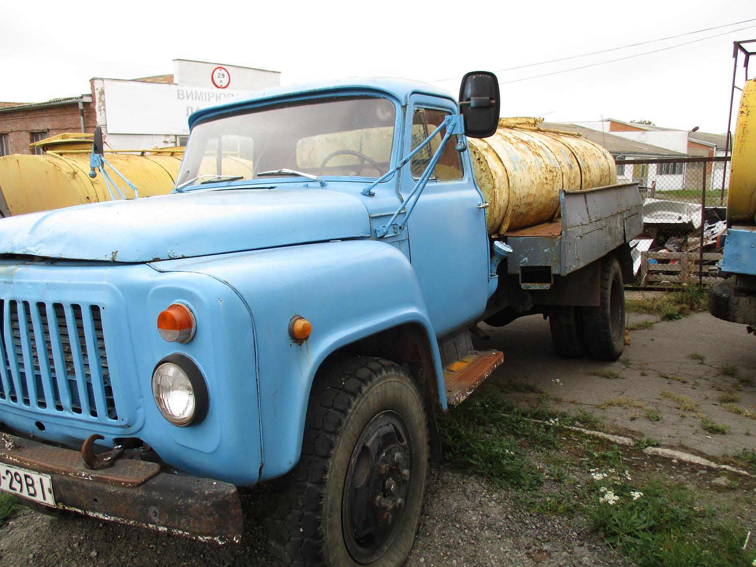 На кузові наявні вм'ятини, корозія, відколи лакофарбового покриття, подряпини, сліди відновлювальних робіт, ознаки фарбування. Знос гуми — 90%. Всі бризговики в незадовільному стані. Биті: правий стоп, передній правий та дублюючий на правому крилі повороти, заднє скло в кабіні. Решітка радіатора погнута. Моторний відділ розкомплектований, достовірно встановити кількість відсутніх деталей неможливо. Бочка в незадовільному стані, цілісність бочки перевірити немає можливості. Деформовані: передній, задній бампер та 2 ДНЗ. Передні повороти та дублюючі повороти незакріплені. Корпуса дзеркал та скло дзеркал в незадовільному стані. Відсутні: одна з кришок бочки, запасне колесо, деякі гайки на колесах, кришка освітлювального пристрою салона. Передня панель приладів та рульова колонка розкомплектовані. Двірники в незадовільному стані. Металеві диски колес в незадовільному стані, погнуті та покриті іржою, в деяких місцях наявні тріщини. Стеля салону розірвана. Салон розкомплектований та в незадовільному стані, брудний. По всьому салону наявні подряпини, потертості, сколи та плями. Нижня частина сидіння відсутня, на інший частині наявні дірки та тріщини. Працездатність крану зливу з бочки перевірити неможливо. Герметичність бочки та кришок на бочці встановити неможливо. Відсутні ключі та свідоцтво про державну реєстрацію ТЗ.