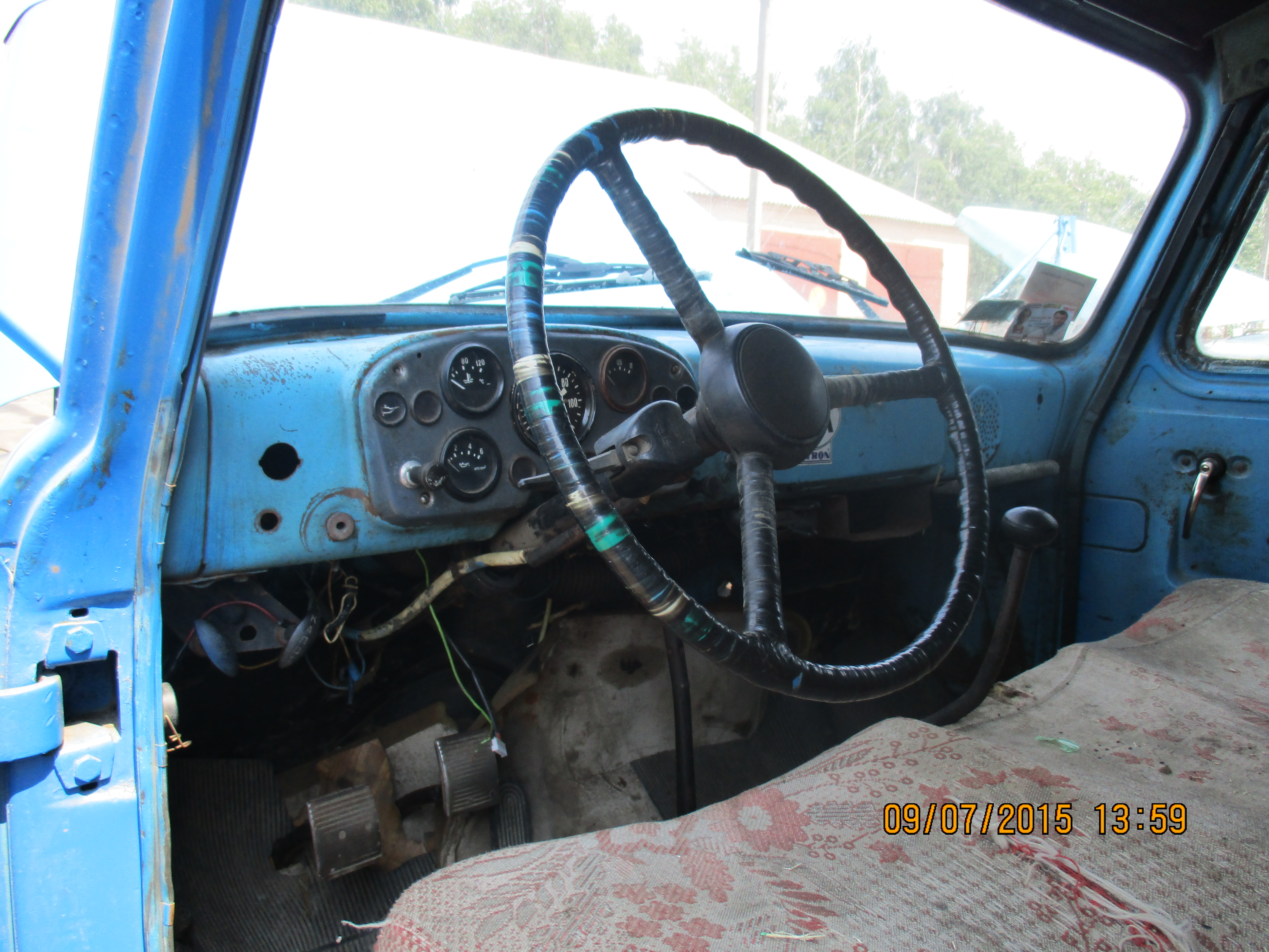 Оббивка салону та сидінь мають потертості та забруднення, наявні плями від невстановлених рідин. Тех.паспорт наявний. Ключі відсутні. Аккумулятор відсутній. Радіатор відсутній. Дзеркала заднього бачення відсутні. Бак для пального відсутній. Задні фари відсутні. |