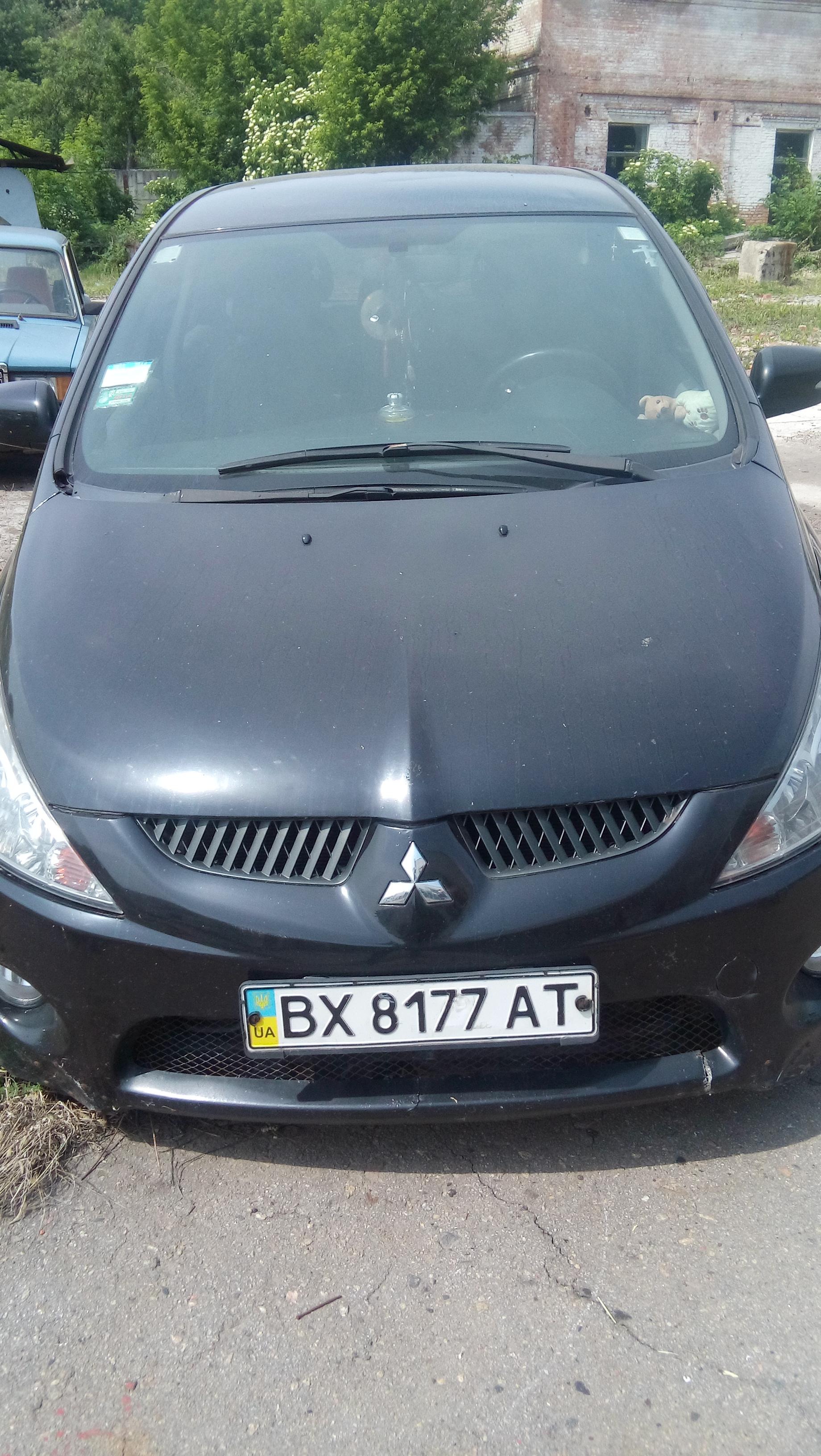 Легковий автомобіль MITSUBISHI GRANDIS, д.н.з. ВХ 8177 АТ, чорного кольору, ключі та тех. паспорт відсутні. Автомобіль зачинений. Технічний стан невідомий. Має пошкодження лако- фарбового покриття по всьому кузову, задній бампер пошкоджений у вигляді тріщини та подряпин, деформований, подряпаний, тріснутий, скріплений саморізами сколи та ржав чина на передній задній дверці, корозія та сколи та ржав чина лівої задньої фари авто та правого переднього крила.Гума зношена марки NOKIAN, ковпаки марки MITSUBISHI. Праве переднє колесо спущене. Диски протерті.