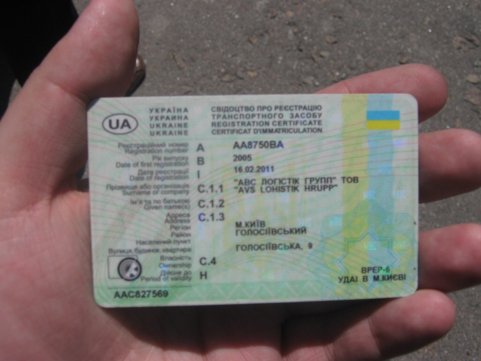 ДНЗ: АА8750ВА;