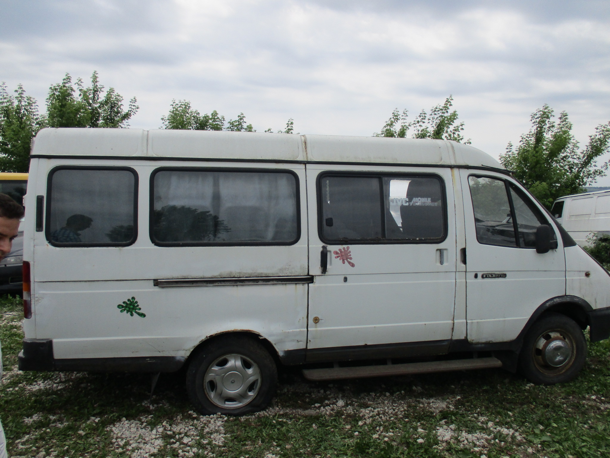 Мікроавтобус-D, ГАЗ 32213 224, ДНЗ ВО9184АН, 2000 р.в., №кузова 270500Y0038385, №двигуна 421500Y0706658, без ключів і документів, салон закритий. Автомобіль білого кольору, спостерігається корозія кузова, на передньому капоті наявна корозія і вм’ятина, двері автомобіля також покриті корозією, тріснуте пластмасове продовження заднього бампера, спущені усі чотири колеса автомобіля, бокові та задні вікна автомобіля закриті шторами , підлога автомобіля встелена лінолеумом коричневого кольору, передні диски автомобіля вкриті корозією, сидіння автомобіля вкриті тканиною чорного кольору, у лівому задньому крилі наявний отвір, відсутній правий двірник.