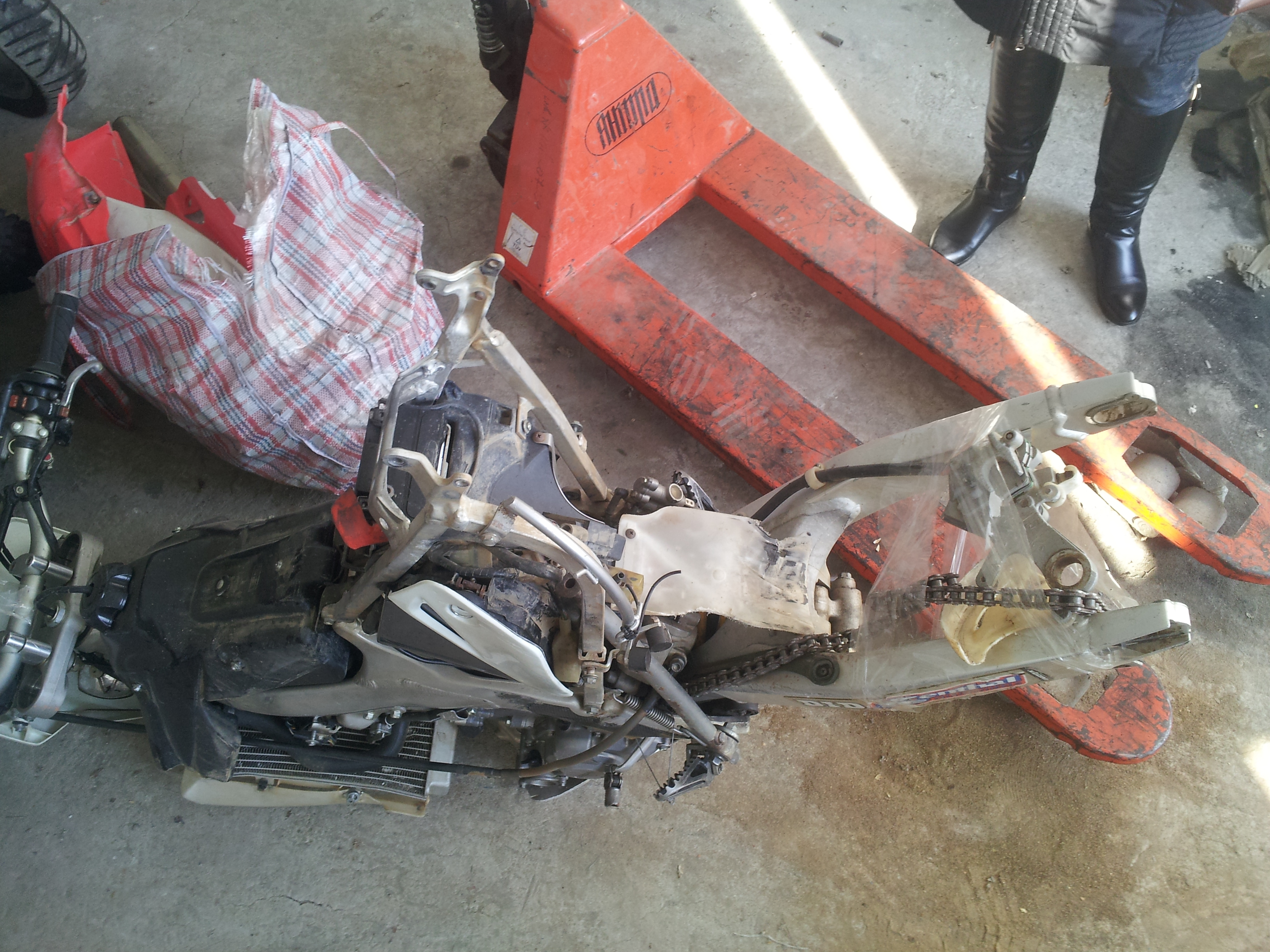 Мотоцикл «Honda F450» 2006 р.в., рама № ZENF450XEC0600092, у розібраному стані, некомплект, б/у. наявні: 2 колеса; відсунті частини декоративного пластмасового облицювання. Мотоцикл знятий з обліку.