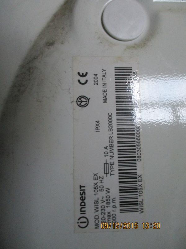 пральна машина " INDESIT", модель Wisl 1005 X, EX 2004 року випуску, білого кольору, брудна, корозія по всьому периметру, з шлангом сірого кольору для води, дріт включення у струм, у барабані шланг для подачі води, дверцята закриваються та відкриваються зі скрипом та подачою сили. Має подряпини та потертості по корпусу. Технічний стан невідомий, можливі скриті дефекти.