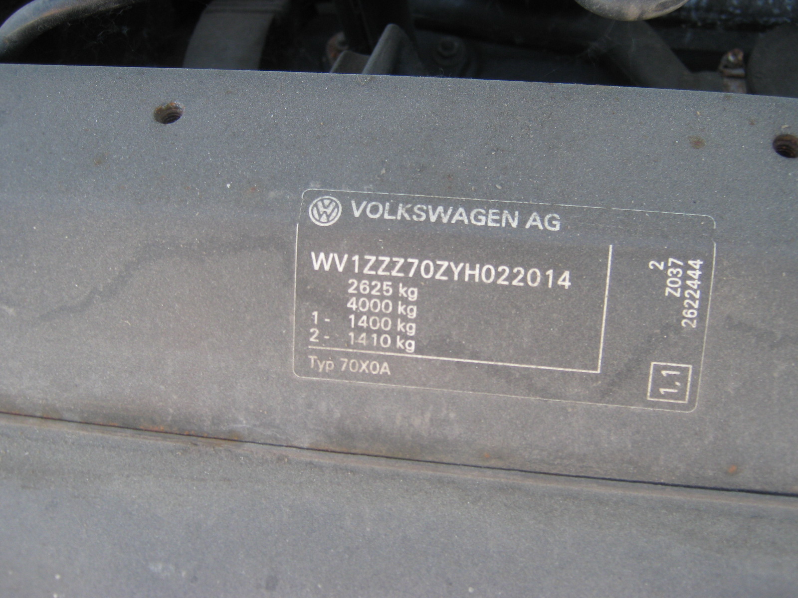 № кузова: WV1ZZZ70ZYH022014;