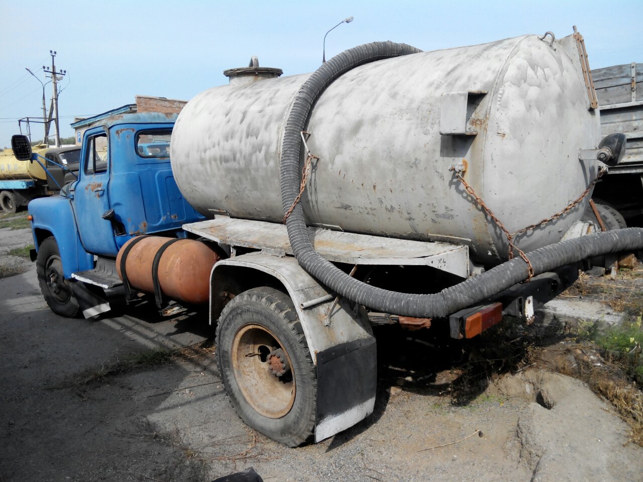 На кузові наявні вм'ятини, корозія, відколи лакофарбового покриття, подряпини. Шланг закачування в незадовільному стані. Цілісність бочки та шлангу закачування встановити неможливо. Працездатність насосу перевірити неможливо. Відсутні: задній Д.Н.З., радіатор. Битий правий задній стоп. Деформовані: задня частина рами, оглядові підніжки бочки з обох боків. Металеві диски колес в незадовільному стані, погнуті та покриті іржою. Електропроводка моторного відділу зрізана. Знос гуми 85%. Щодо салону - салон в незадовільному стані, брудний. По всьому салону наявні подряпини, потертості, сколи та плями. Сидіння тріснуте та незакріплене. Відсутній правий динамік. Наявний газовий балон. Моторний відділ розкомплектований, встановити кількість відсутніх деталей неможливо. Наявний ключ. Відсутнє свідоцтво про державну реєстрацію ТЗ.