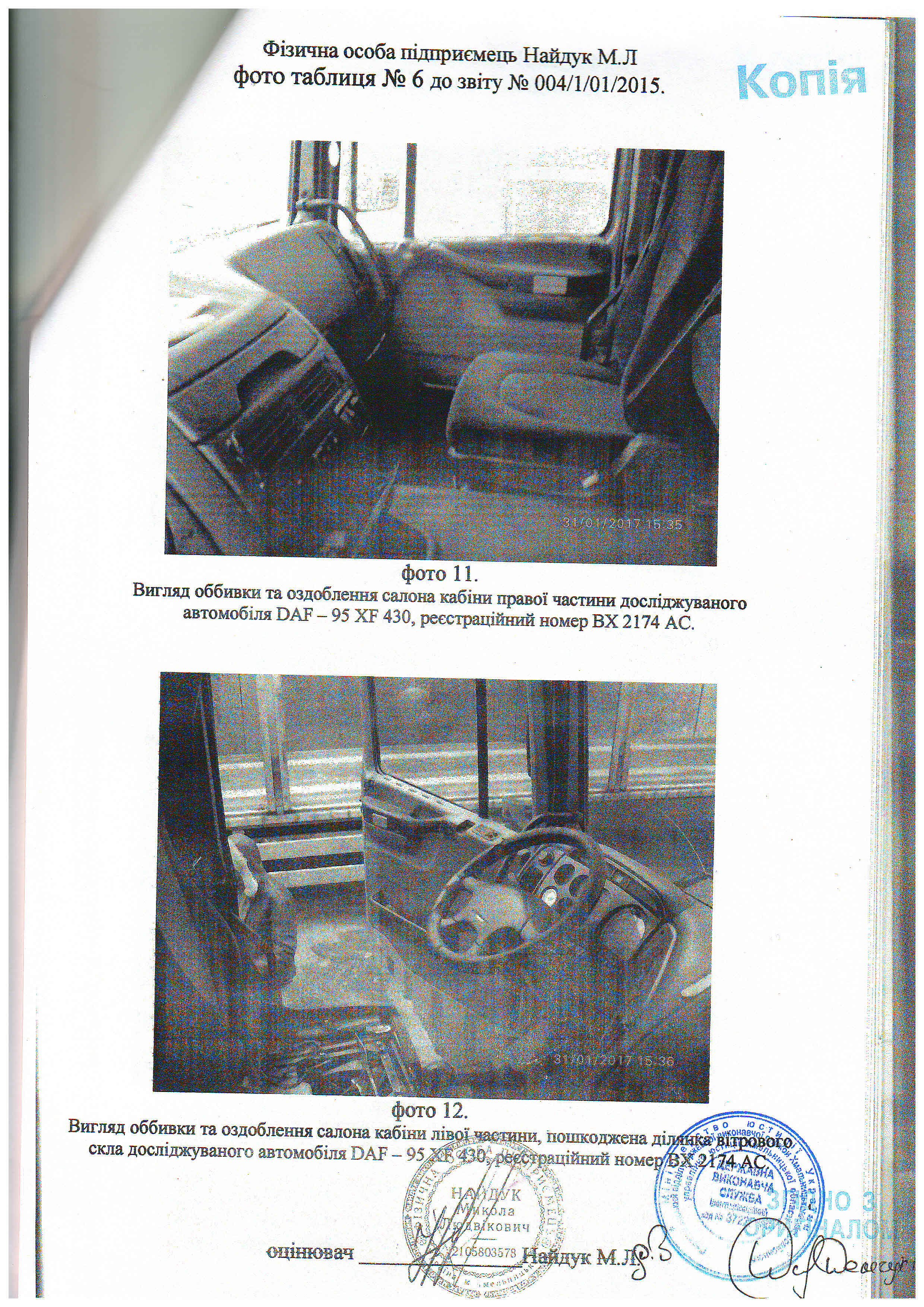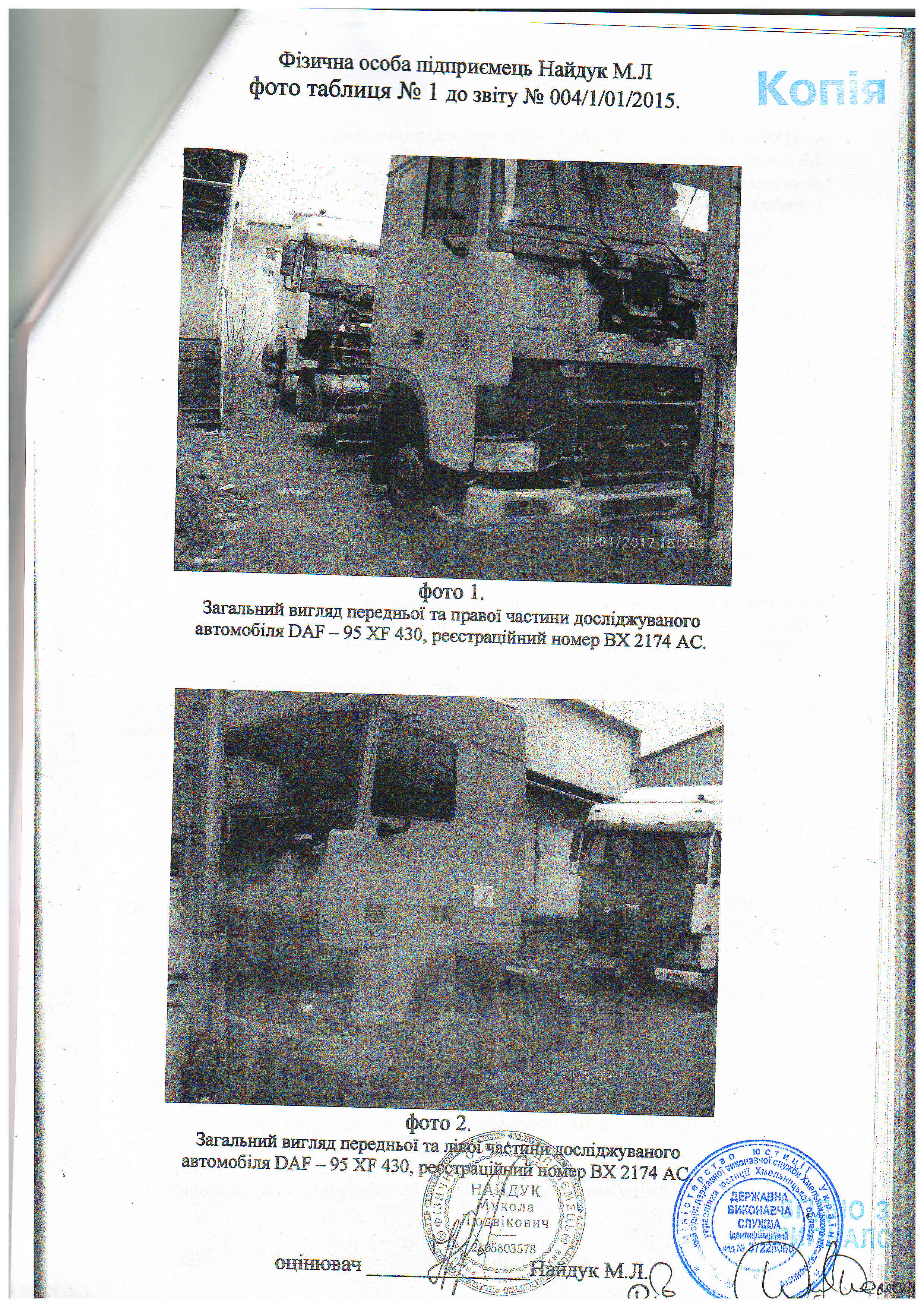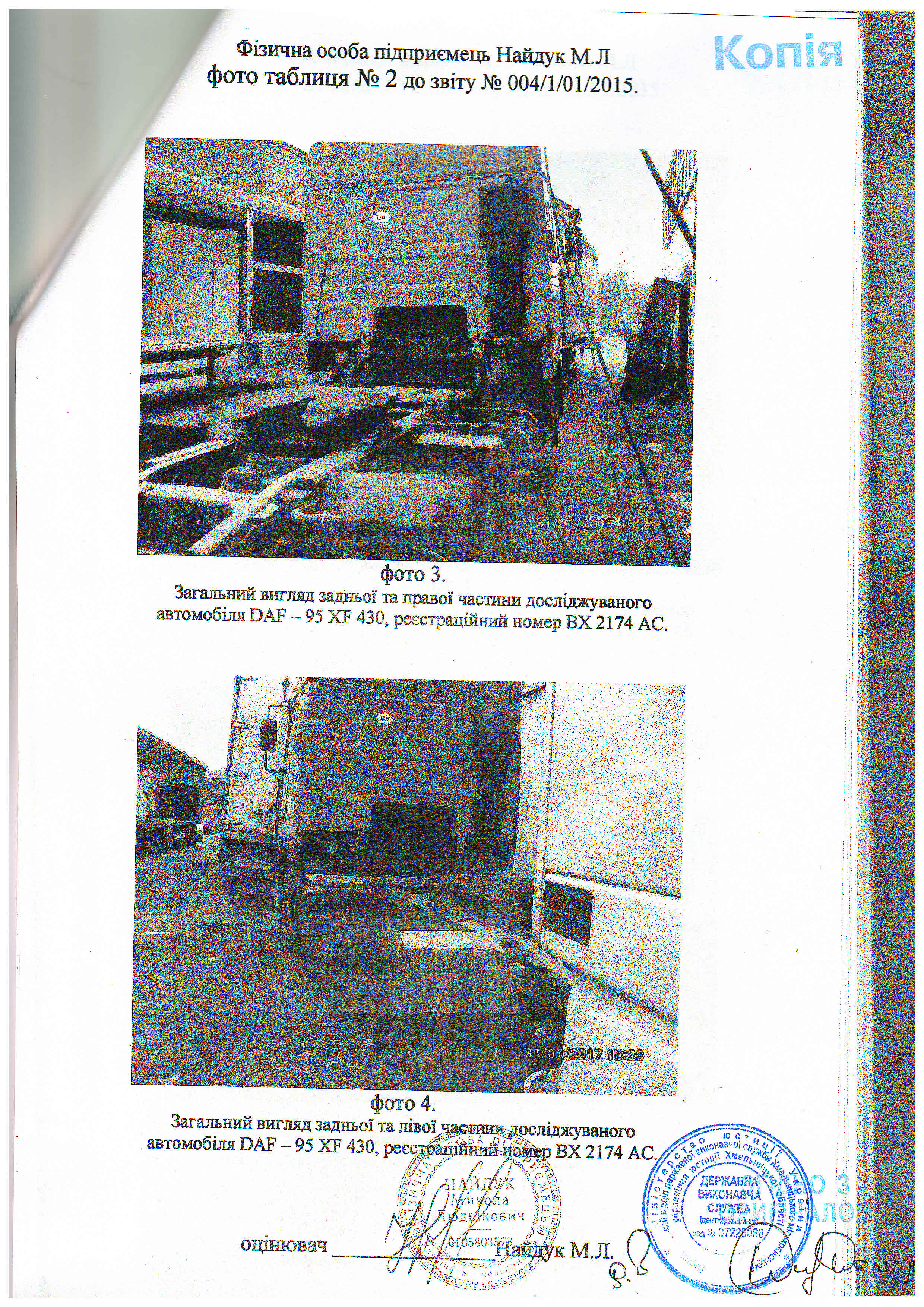 Капот (кришка передня)- відсутній. Автошини передні ліва, права: GT-879 295/80 R-22.5 не придатні. Автошини, диски R-22.5 задні зовнішні права, ліва: MICHELIN 295/80R-22.5 в кількостях 4-х шт. відсутні. Паливний бак (місце кріплення права середня частина рами): відсутній. АКБ (1000А 180 АН, місце кріплення ліва середня частина рами): відсутні. Підніжка права кабіни: пошкоджена, відламана. Підніжка ліва кабіни: пошкоджена у вигляді тріщин, відламування фрагментів. Оббивка кабіни пошкоджена: потертості, плями з розводами, тріщини та розриви. Сидіння ліве (водія): відсутня подушка. Боковина задня права кабіни: деформована на ділянці-55х25 см; із згинами, вм’ятинами, випуклістю металу. Глибока корозія кабіни: наскрізні діри, а саме боковини (рами прорізу правої, лівої дверки). Пошкоджене лакофарбове покриття: подряпини, здирання, злущування фарби в місцях корозійних пошкоджень. Амортизатори задні правий, лівий (задньої підвіски): пошкодження у вигляді глибокої корозії наскрізні діри, тріщини, відламування фрагментів. Корпус редуктора заднього мосту: глибока корозія відшарування фрагментів металу. Гідронасос підйому кабіни: непрацездатний, не функціонує. Двигун: наявні мокрі запилені сліди оливи та палива, потребує обслуговування. КПП: непрацездатна 6, 7, 8 передача, потребує обслуговування.