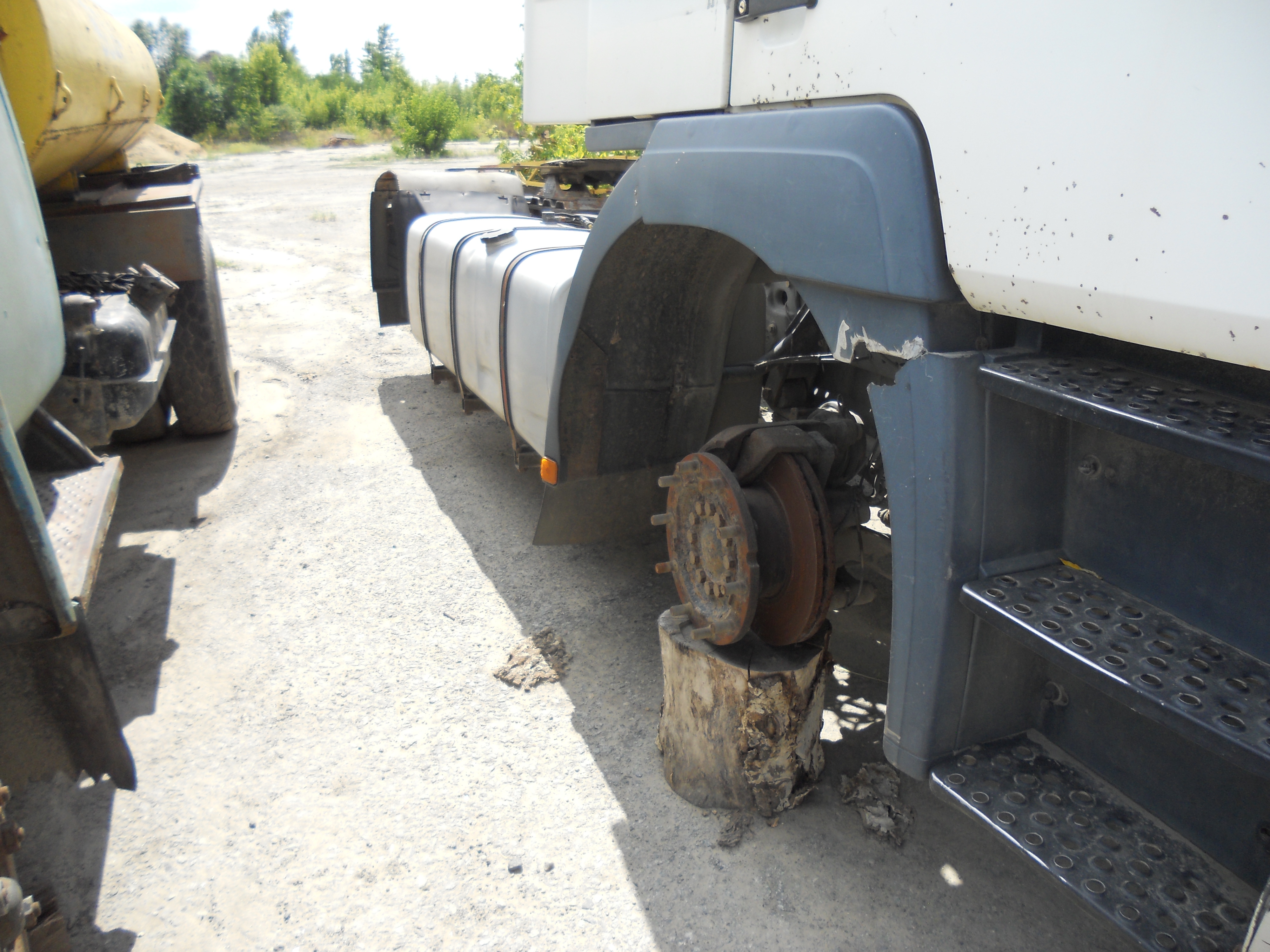 Вантажний сідловий тягач - MAN 19.414, днз ВН7394АТ. Стан кузову – задовільний , виявлено численні пошкодження кузову, механічного та корозійного характеру. Наявні наслідки суттєвого зносу внутрішнього оздоблення. Коробка передач, електрообладнання, наявне навісне устаткування та ходова частина потребують проведення ремонту та відновлювальних робіт. Відсутні передні освітлювальні прилади, гума всіх колес, накладка переднього бампера.