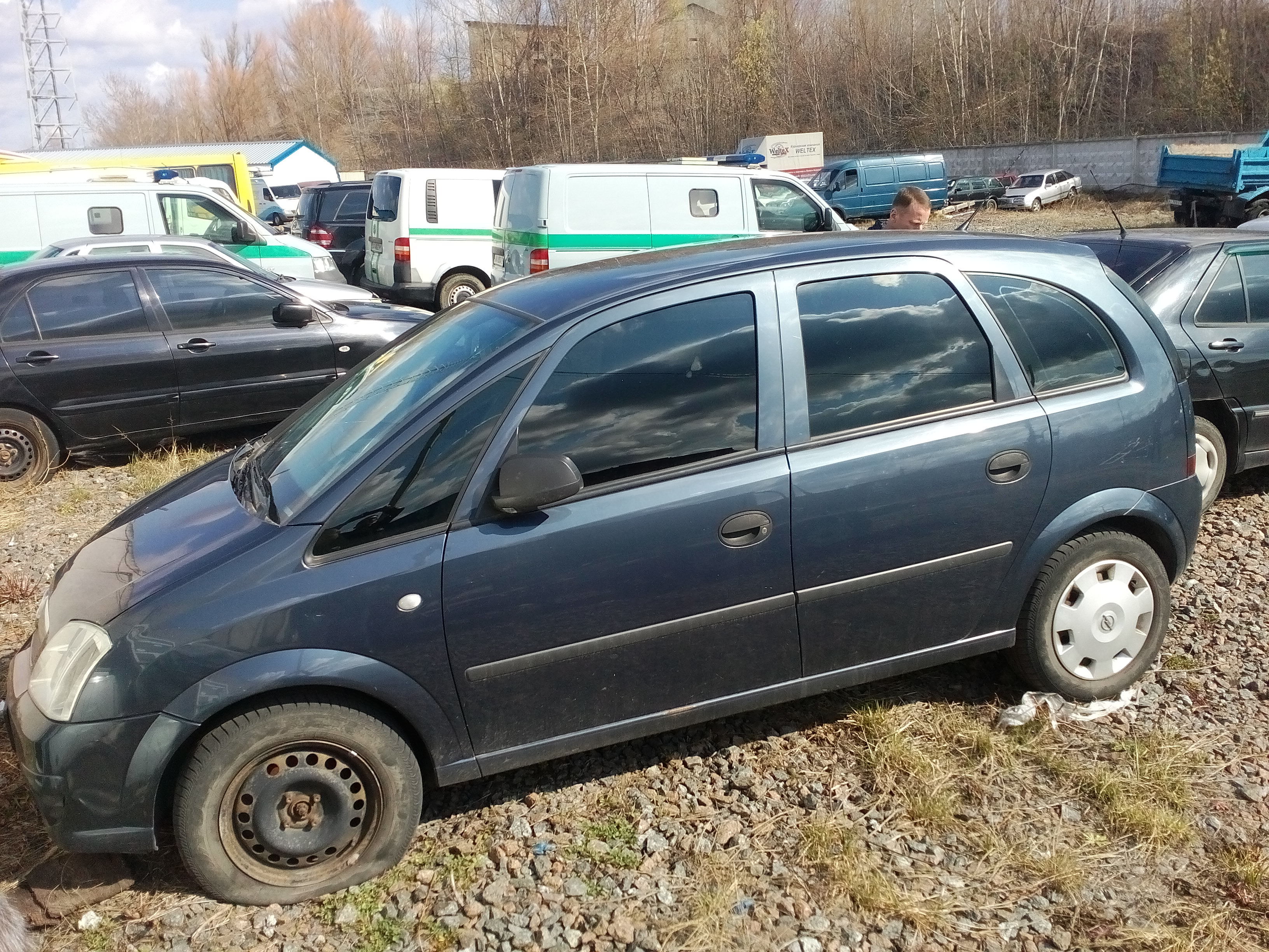 По всьому периметру кузова є мілкі подряпини, вмятини, потертості, плями та ознаки корозії. Лобове скло пошкоджене. Спущені передні та задні колеса.