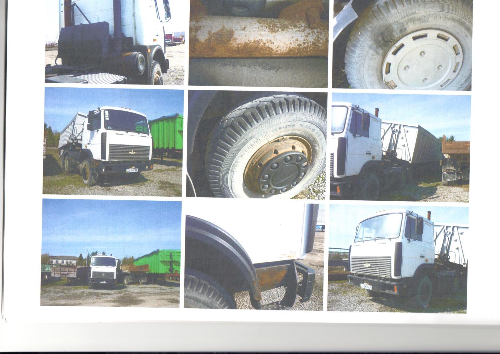 Транспортний засіб МАЗ 642208, 2008 р.в., білого кольору, об’єм двигуна 14866 куб.см., пробіг – 244634 км., д.н.з. АТ3957АР, шасі №YЗМ64220880006989. КТЗ має пошкодження кузову: коробок жорсткості, (лонжеронів, поперечин, підсилювачів, рами під моторної), бризговик переднього крила правий, двері передні праві. КТЗ на ходу і його технічний стан відповідає строку експлуатації та пробігу