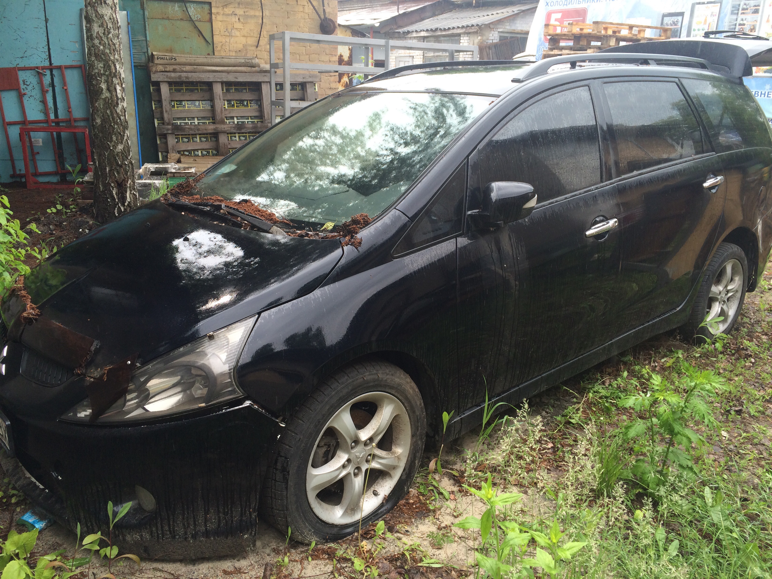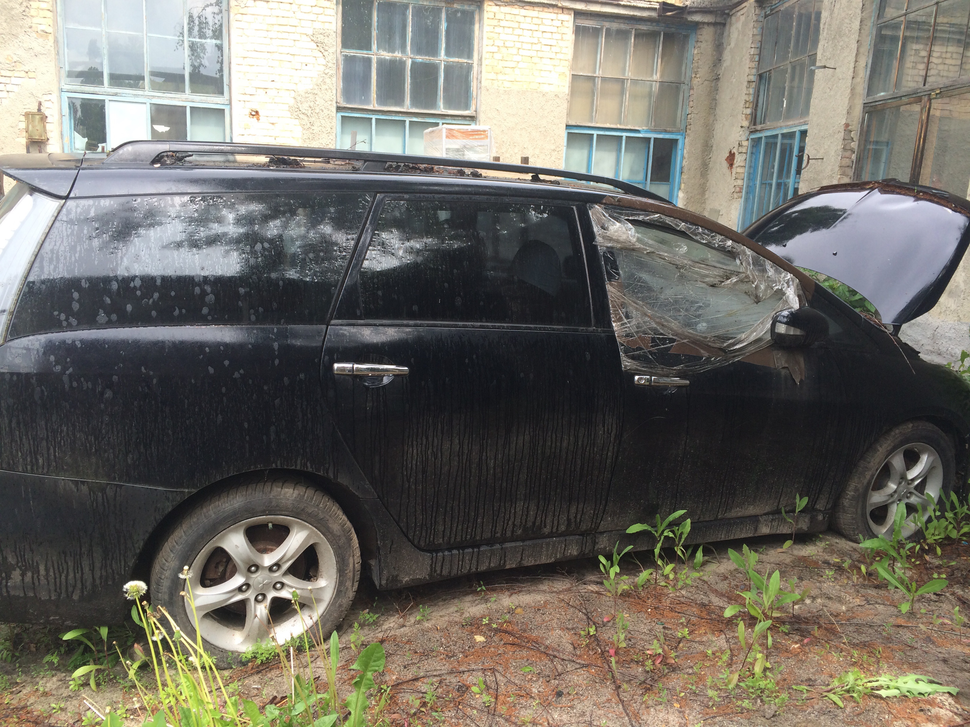 Пошкодження лакофарбового покриття та вм`ятини по всьому периметру кузову автомобіля, наявна корозія. Плями в салоні. Відсутня магнітола, сонцезахисні козирки, зламана панель рульової колонки. Відсутня запаска та бокове скло правих передніх дверей.