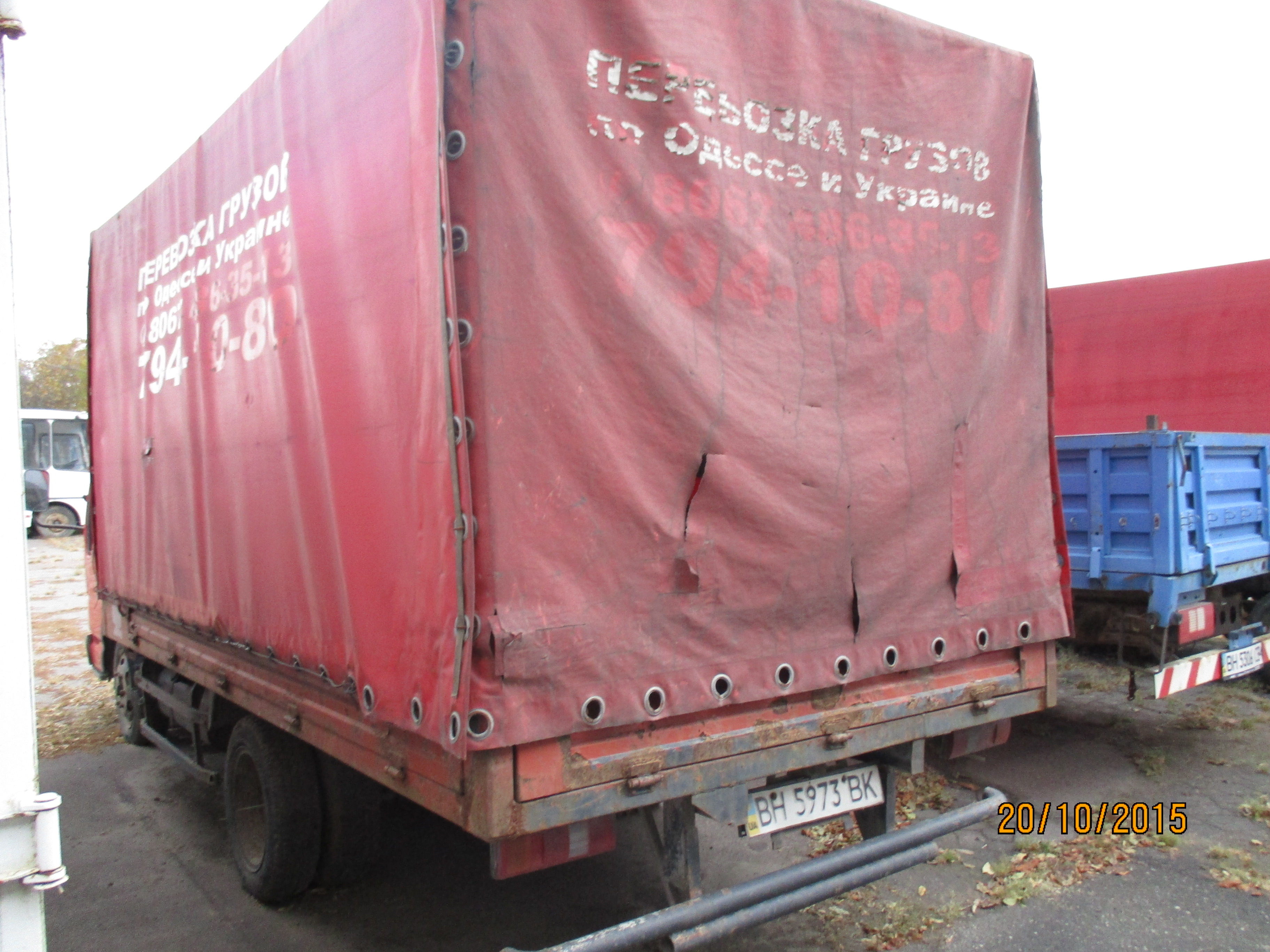 ТЗ має пошкодження лакофарбового покриття, потертості оббивки салону (даху, стійок боковин, підлоги, дверей). Вітрове скло має тріщиши, деформація захисту, тент вантажний має пошкодження, рама ТЗ має корозійні пошкодження, потребуе пофарбування.