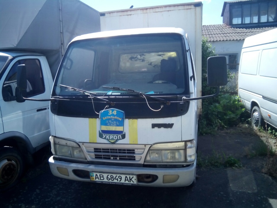 Автомобіль FAW CA1031, білого кольору, ДНЗ АВ6849АК, № шасі Y7CCA103160056949, фургон-С. Подряпини та потертості по всьому салону, обшивка в незадовільному стані. Відсутні килимки, автомагнітола, прикурювач. Передня панель розкомплектована, відсутні або пошкоджені пластикові елементи (дах, карти). Видно пошкоджену проводку під панеллю приладів, пошкоджені динаміки, відсутні ручки підіймання-опускання вікон. Диски коліс в незадовільному стані, знос гуми 70-90%. По всьому кузову присутні пошкодження лакофарбного покриття, вм'ятини. Рівень охолоджувальної рідини та оливи невідомий. Замки дверей, ущільнювачі та двірники в незадовільному стані. В наявності: 1 ключ, 2 ДНЗ. Відсутні: технічний паспорт, АКБ та комплектація автомобіля (запасне колесо, домкрат, аптечка, вогнегасник), права підніжка, ручка правої дверки. Двигун забруднений маслом, відсутня клема АКБ. Передній бампер погано закріплений, ДНЗ мають деформації.