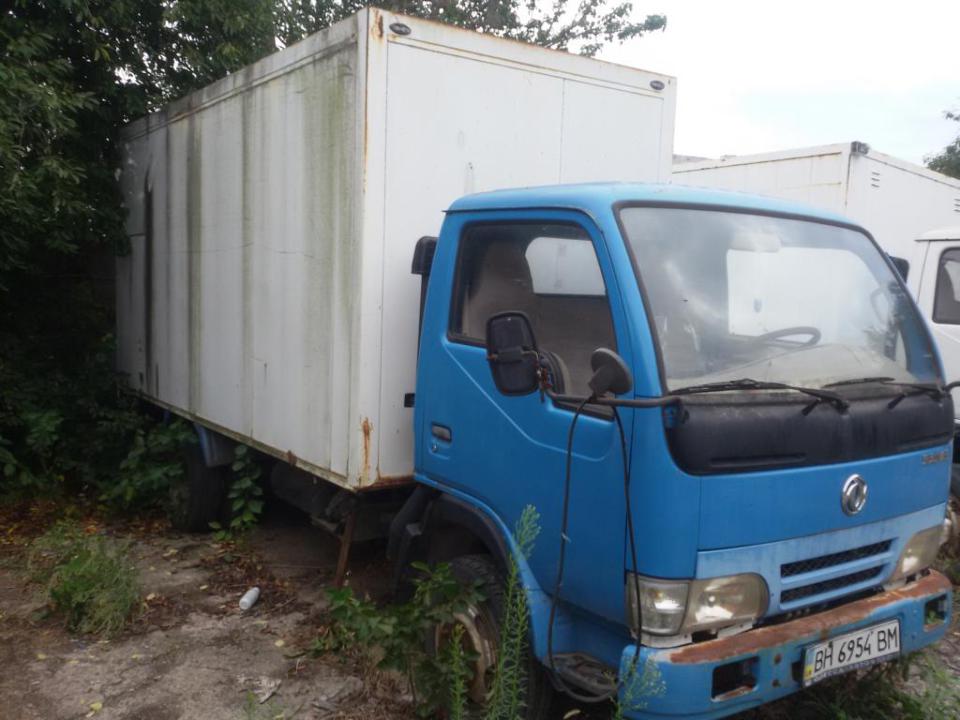 Вантажний фургон "DONG FENG EQ1044", д/н ВН 6954 ВМ. ТЗ не находу, має наступні пошкодження: бампер має вм'ятини, бокові дзеркала та їх кріплення зламані, по всій кабіні присутні вм'ятини, сліди корозії та пошкодження лако-фарбового покриття, будка також має вм'ятини та пошкодження лако-фарбового покриття; пошкоджена вихлопна труба; відсутня акумуляторна батарея; відсутні протитуманні фари; працездатність двигуна не встановлено; знос шин на 80-90%; Салон автомобіля брудний та має пошколдення. Ключі відсутні, свідоцтво про реєстрацію ТЗ знаходиться у боржника.