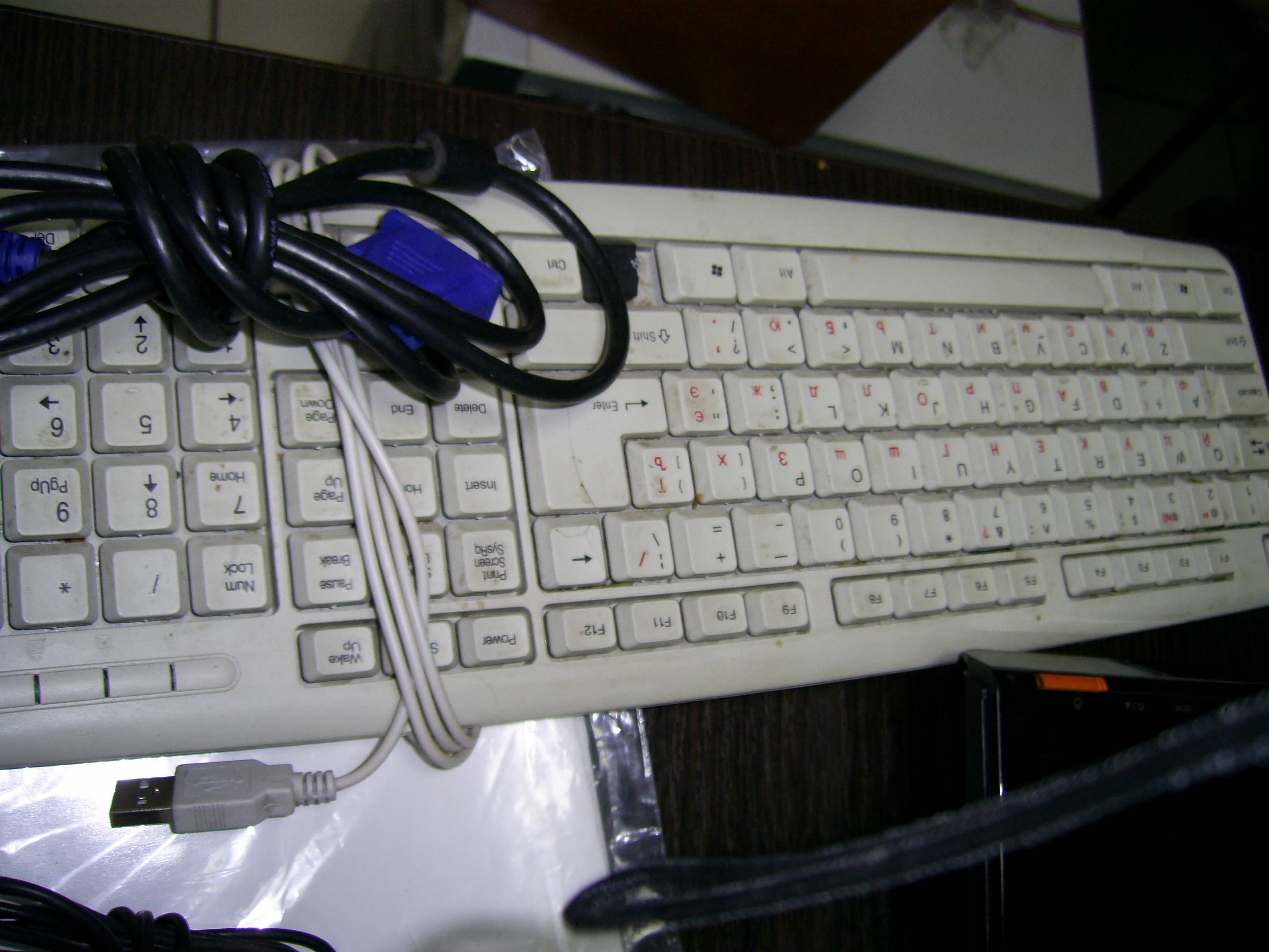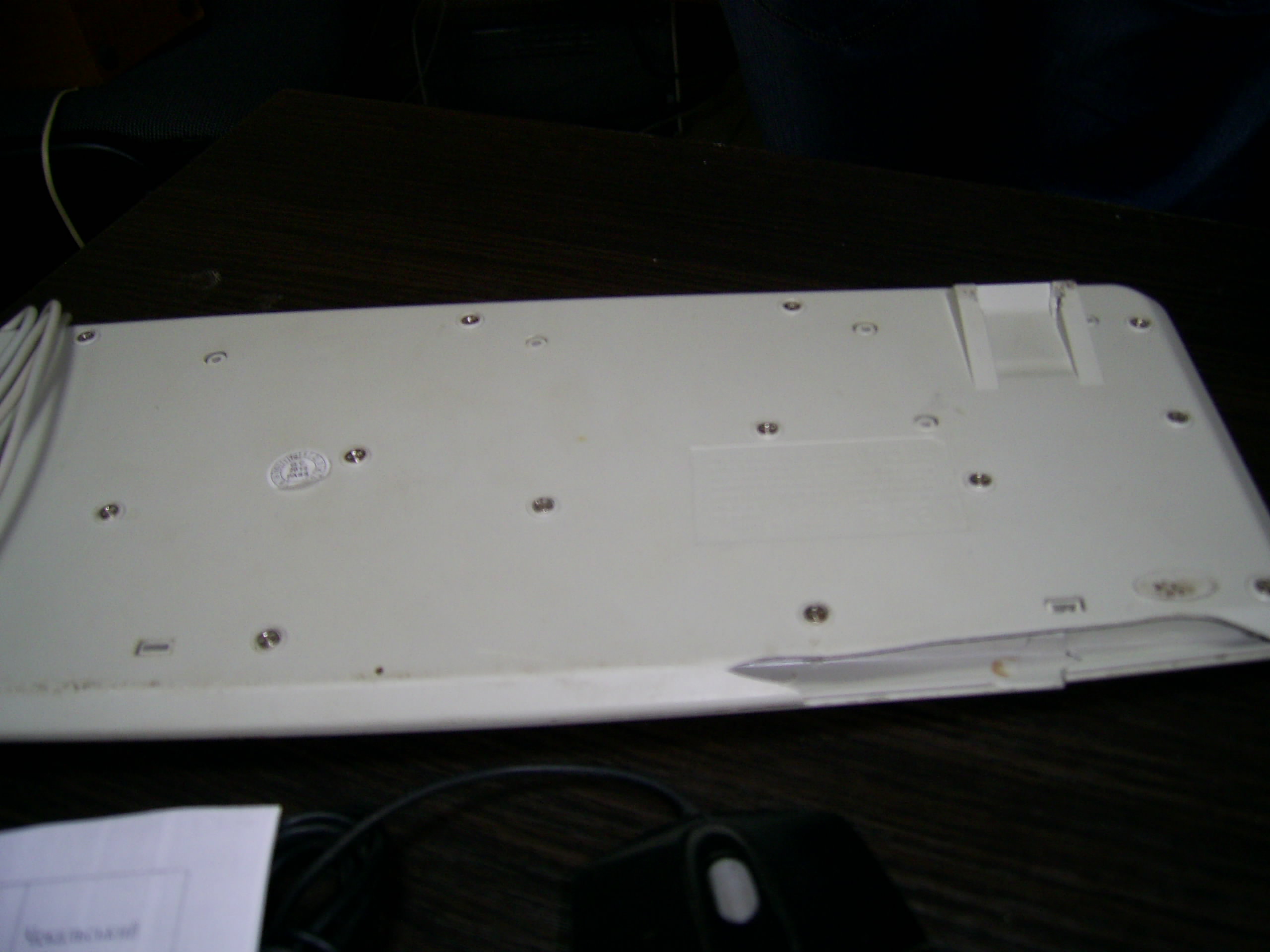 Клавіатура сірого кольору, пошкоджені кнопки, пошкоджена нижня панель.