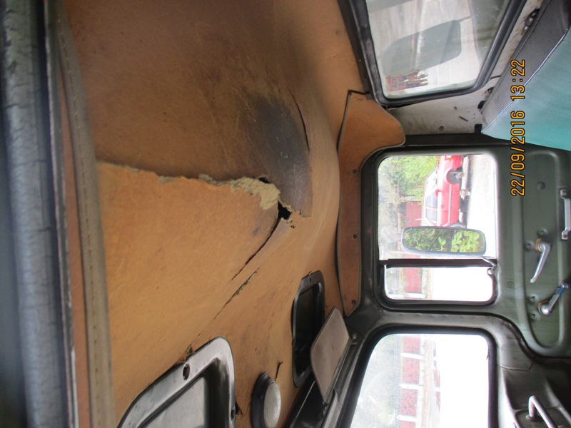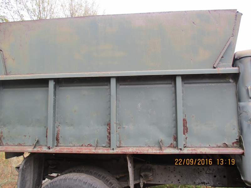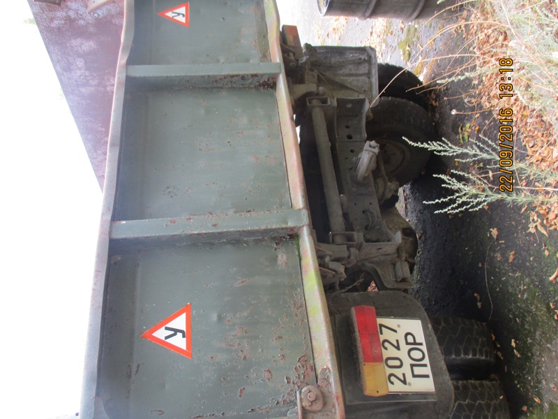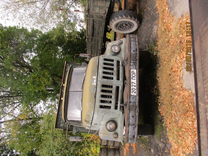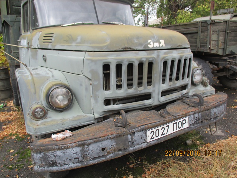 Вантажний автомобіль марки ЗИЛ-ММЗ, модель 4502, 1974 року випуску, зеленого кольору, № двигуна 050086, тип ТЗ – самоскид, д.н.з. 2027 ПОР. Робочий стан не перевірявся. Потертість лакофарбового покриття, подряпини, деформації, корозійні ушкодження кузова та рами. Двигун та КПП потребують діагностики. Відсутнє АКБ. Бензобак погнутий. Лівий поворотник відсутній. Борт - нарощений. Салон має сліди підтікання води, забруднений,потертий, обшивка даху пошкоджена.