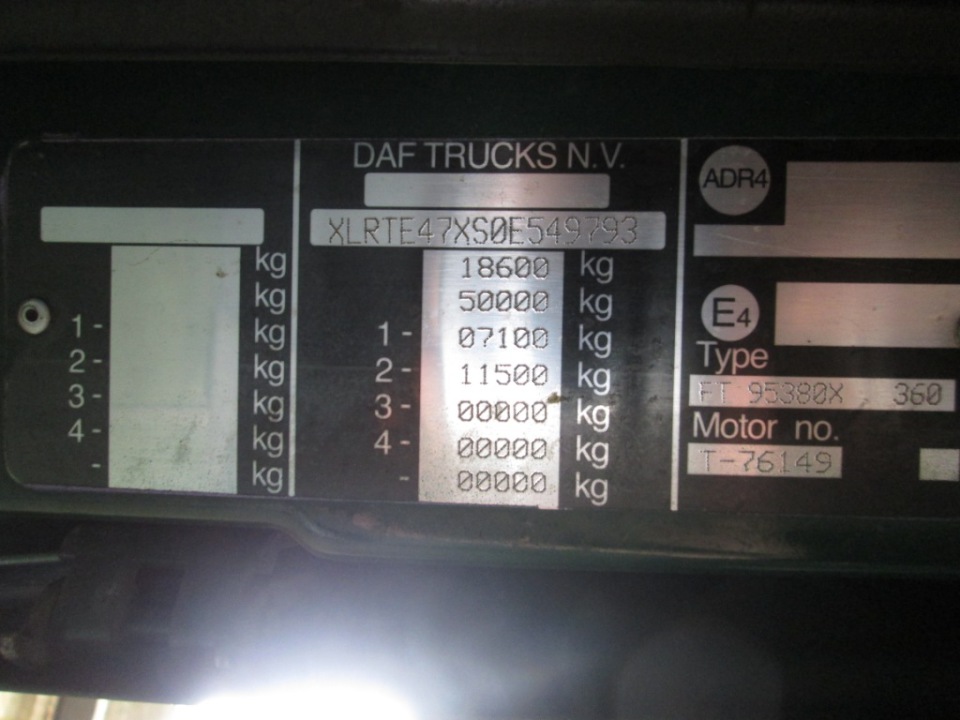 Сідловий тягач DAF 95 XF 380, державаний номерний знак ВО0407АН, синього кольору, 2001 року випуску, номер шасі (кузов, рама, коляска) XLRTE47XS0E549793, тип двигуна-дизель знаходиться в технічно-несправному , некомплектному стані. Повна маса 18600 кг, маса без навантажень 7260 кг. Для свого строку експлуатації має незадовільний вигляд та стан. В результаті проведеного дослідження встановлено, що марка , тип і номер кузова співпадають із записами в свідоцтві про реєстрацію КТЗ.