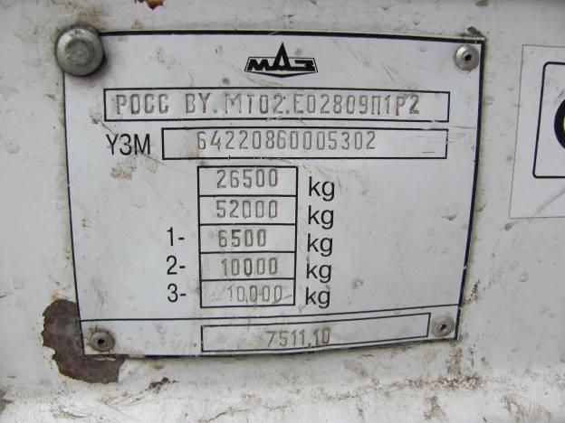 Автомобіль МАЗ 6422 08, 2006 року випуску, ДНЗ ВЕ4243ВЕ, номер кузова Y3M64220860005302. Транспортний засіб укомплектований. Ключі та свідоцтво про державну реєстрацію у наявності. Має функціональні пошкодження лакофарбового покриття, наявна корозія металу, має пошкодження КПП.
