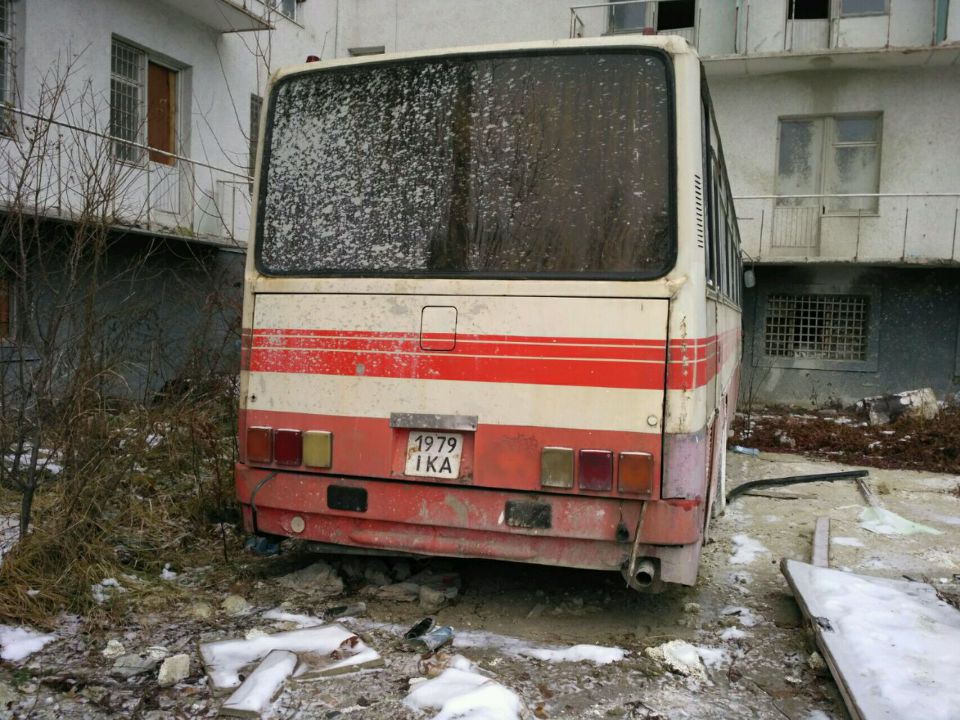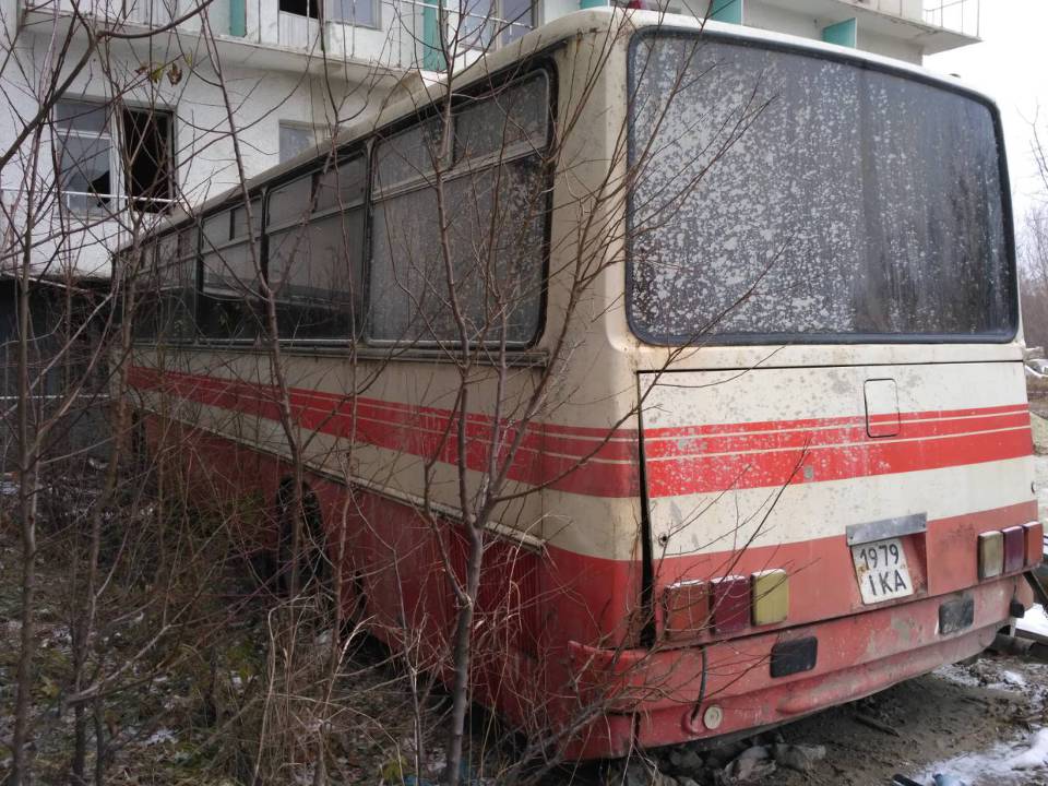 Автобус D марки IKARUS, модель 256, 1990 року випуску, ДНЗ 1979 ІКА, кузов № 0878100А, в незадовільному стані, зіпсоване лакофарбове покриття та скло, сліди іржі, елементи салону та сидіння мають сліди зношеності, пошкодження та забруднення, зношеність колісних шин, відколи та тріщини бризовиків. Відсутній генератор, стартер, компресор та акумулятор.