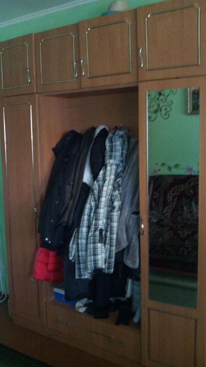 Прихожа меблева стінка, трьохсекційна, коричневого кольору, в задовільному стані.