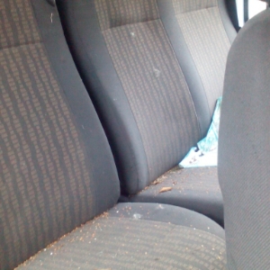 Подряпини та сколи лакофарбового покриття, сліди корозії та деформації на порогах, кузові. Шини коліс мають задовільний знос. Автомобіль в неробочому стані. Забруднення, потертості оббивки салону. Відсутній акумулятор.