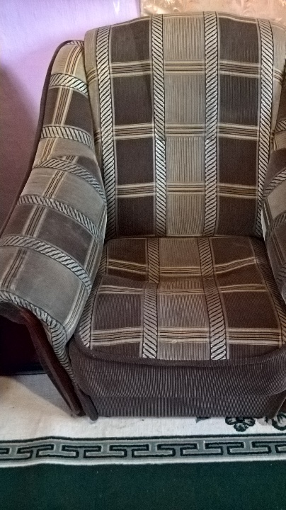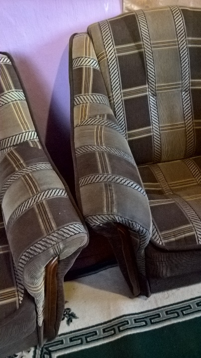 Диван та два крісла коричневого кольору.