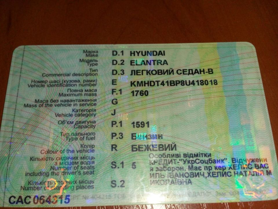 Автомобіль, HYUNDAI ELANTRA, 2008, р.в., № кузова № KMHDT41BP8U418018, бежевого кольору, ДНЗ: СА 3733 АР. Тип трансмісії: механічна. Показники спідометра встановити не можливо в зв'язку з розрядженим аккумулятором. Передній та задній бампер мають вм'ятини. Передній бампер частково відокремлений від кузова. На задньому бампері сліди ДТП. Оббивка салону та сидінь мають значні подряпини, потертості та плями по всьому салону ТЗ. На підлокотнику відсутня кришка. Ключ запалювання та свідоцтво про реєстрацію наявні. Аккумулятор та запасне колесо наявні.