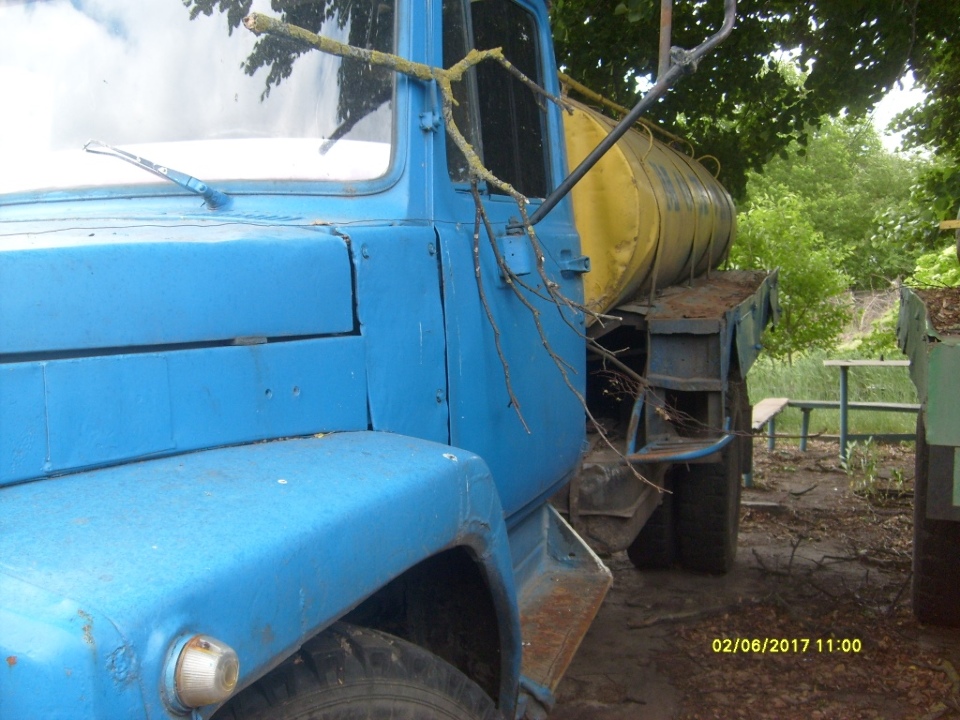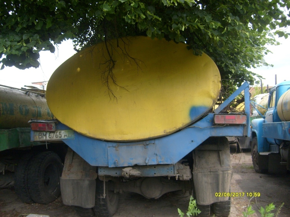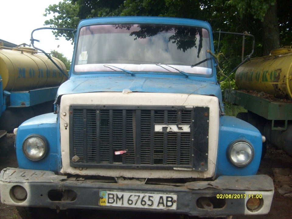 Автомобіль ГАЗ-3307, загально вантажний, цистерна харчова, державний номер ВМ 6765 АВ, 1994 року випуску, кузов № ХТН330700Р1559562, № двигуна 511104060. Стан задовільний, кабіна має наявні сліди відновлювального ремонту. Відсутні дзеркала заднього виду, АКБ. Цистерна має зовні деформації та корозійні пошкодження. Пробіг встановити не можливо, ТЗ опломбований. Ключі та технічний паспорт відсутні.