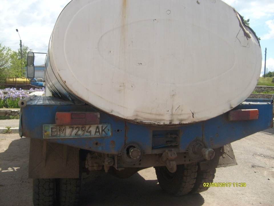 Автомобіль ГАЗ-3307, загальний вантажний, цистерна харчова, державний номер ВМ 7294 АК, 2004 року випуску, № шасі 33070040860571, № двигуна 51500Н41016573. Стан задовільний, кабіна має корозійні пошкодження. Відсутні дзеркала заднього виду. Цистерна має зовні деформації та корозійні пошкодження. Ключі та технічний паспорт відсутні.