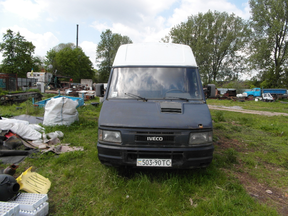 Колісний транспортний засіб - фургон "Iveko Turbo Daily 3510", державний реєстраційний номер - відсутній, ідентифікаційний номер (VIN) - відсутній (знищений), синього кольору, рік випуску - невідомий, об'єм двигуна - 2499 см. куб., дизель. Наявні недоліки: численні пошкодження лакофарбового покриття, потертості, вм'ятини, корозія; гранично зношене обладнання; пошкодження в салоні; двигун некомплектний; зношеність основних вузлів та агрегатів. Технічний стан ТЗ незадовільний, відсутні VIN-код, маркування кузова і двигуна. Наявний номерний знак невідомого походження. ТЗ без ознак реєстрації на території України. Відомості про наявність/відсутність технічного паспорта та ключів відсутні.