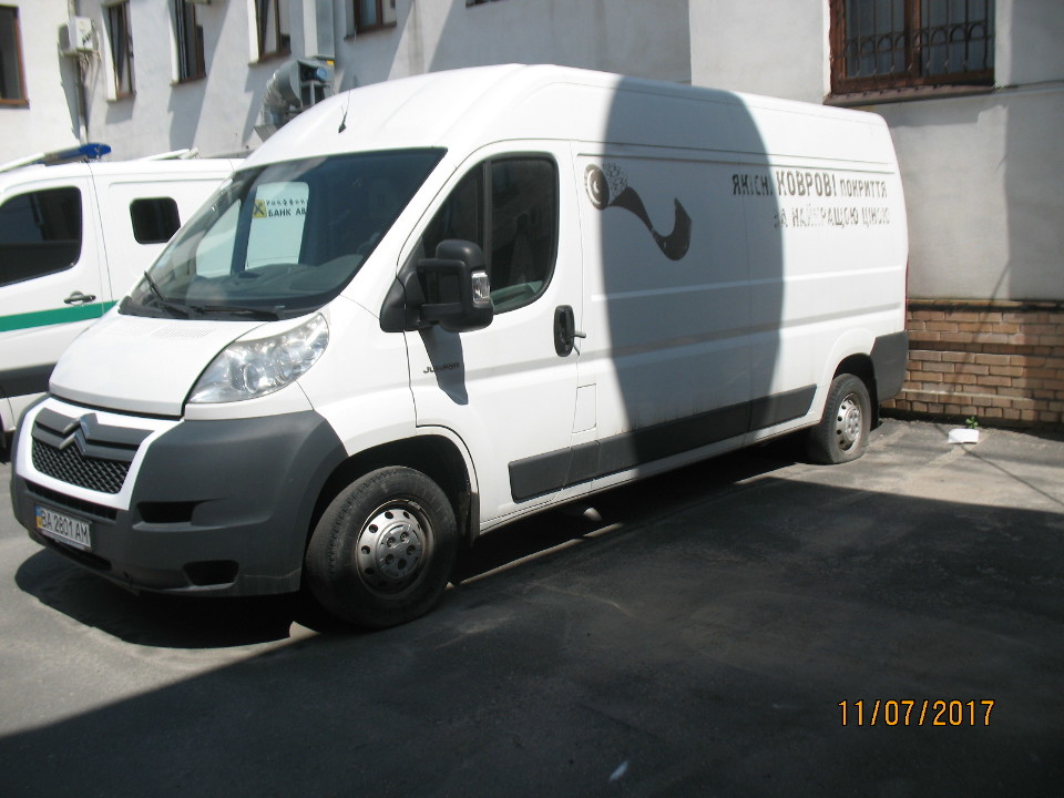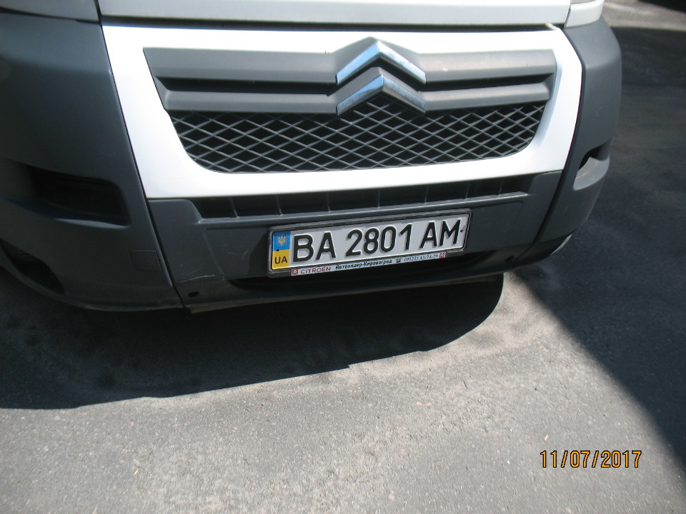 Автомобіль марки Citroen Jumper, білого кольору, 2008 року випуску, державний номер ВА 2801 АМ, номер шасі VF7YCBMFC11401560, об'єм двигуна 2198 см. куб., вид пального - дизельне паливо. КТЗ має пошкодження кузову: деформація без пошкодження лакофарбового покриття, оббивка салону (даху, стояків боковин, полиць, дверей, оббивка сидінь, пофарбування кузова, скла). Автомобіль не на ходу. Свідоцтво про реєстрацію транспортного засобу та ключі знаходяться у зберігача.