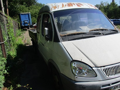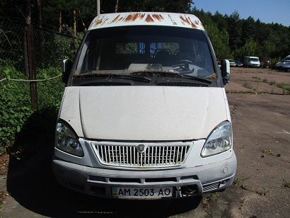 Згідно постанови про опис та арешт майна (коштів) від 01.08.2017р. Автомобіль ГАЗ 330202-01, 2007 р.в., ДНЗ АМ2503АО, номер кузову Х9633023072202005 номер рами 33023070069808. Вантажопасажирський - В. Колір білий, пробіг 50354. Не повна комплектація агрегатів у підкапотному просторі, відсутні: АКБ, радіатор охолодження рідини, комплектуючи елементи відпрацьованих газів. Коробка передач та елементи карданного валу демонтовані з ТЗ та знаходяться в кабіні. Також відсутній каркас під тент та тент кузова, запасне колесо та автомагнітола. Ліве та праве дзеркала заднього виду мають тріщини та відколи. В неробочому стані. Колеса зношені, в наявності сліди глибокої корозії, деформації.