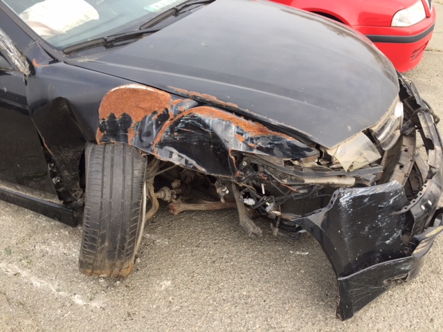 Пошкодження лакофарбового покриття по всьому периметру кузова автомобіля. Загальний технічний стан незадовільний, пошкоджено передній бампер, праве крило, праве переднє колесо, транспортний засіб не на ходу. Тех. паспорт відсутній. Визначити показники одометра не має можливості, оскільки відсутні ключі.