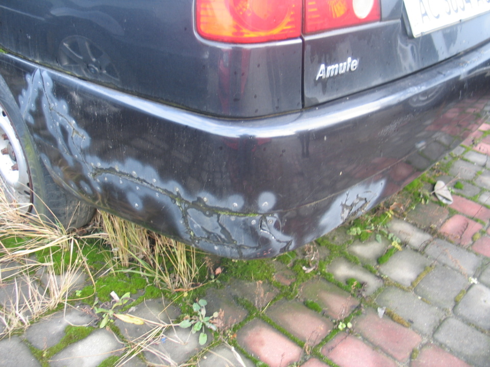 Двигун заляпаний мастилом. Задній та передній бампери мають численні механічні пошкодження та сліди відновлювальних ремонтів. Сколи та подряпини на фарбувальному шарі. Забруднення та пошкодження оббивки передніх та задніх сидінь. Забруднення оббивки. Пошкодження фарбування. Тріщина вітрового скла. Має корозійні пошкодження складових частин кузова. КТЗ на ходу, його технічний стан відповідає терміну експлуатації і пробігу.