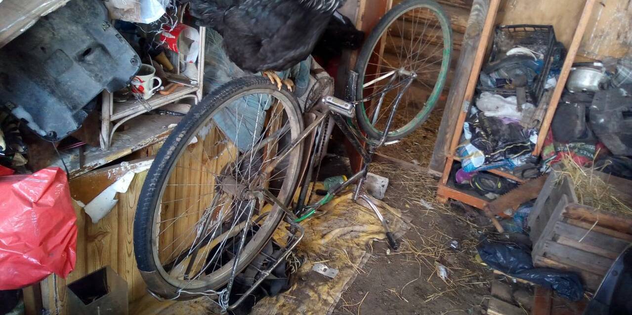 Велосипед, має пошкодження камер та покришок обох колес.