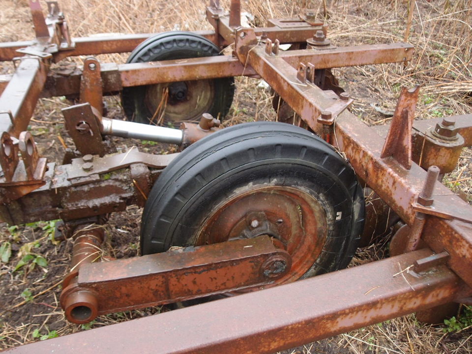 Борона дискова прицепна БДТ-3,2. Пошкоджена корозією, сліди вигорання фарби. Сліди чисельних зварювальних робіт. Гідравлічна система не працює. Зовнішній стан-задовільний, потребує ремонту та фарбувальних робіт.