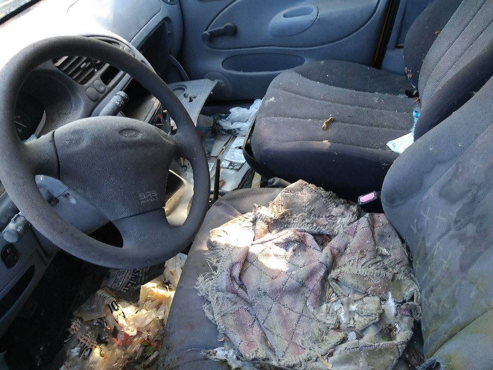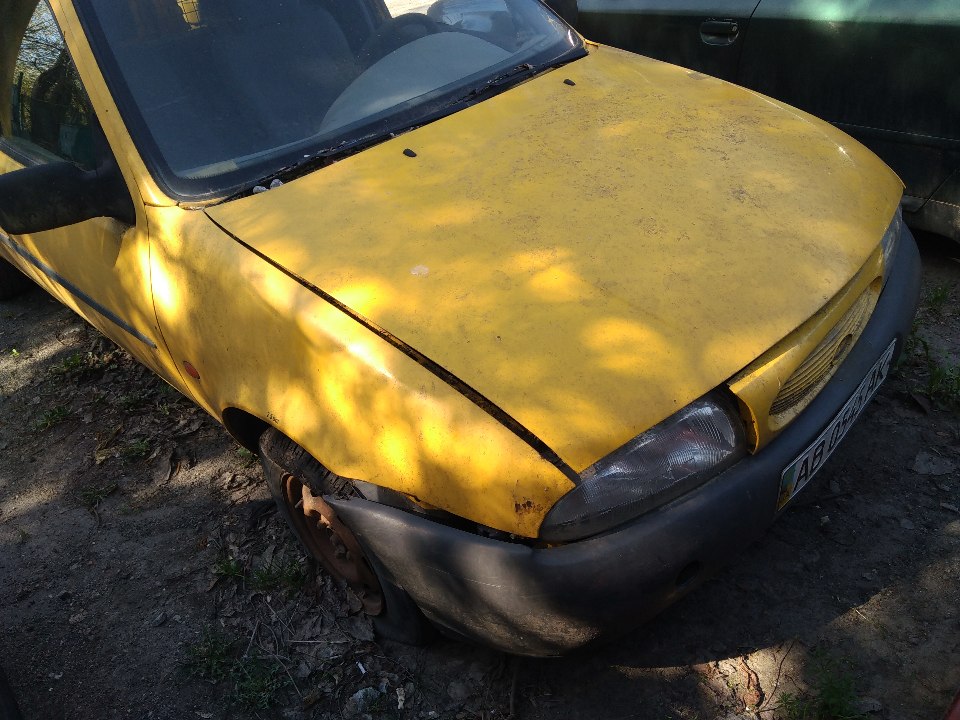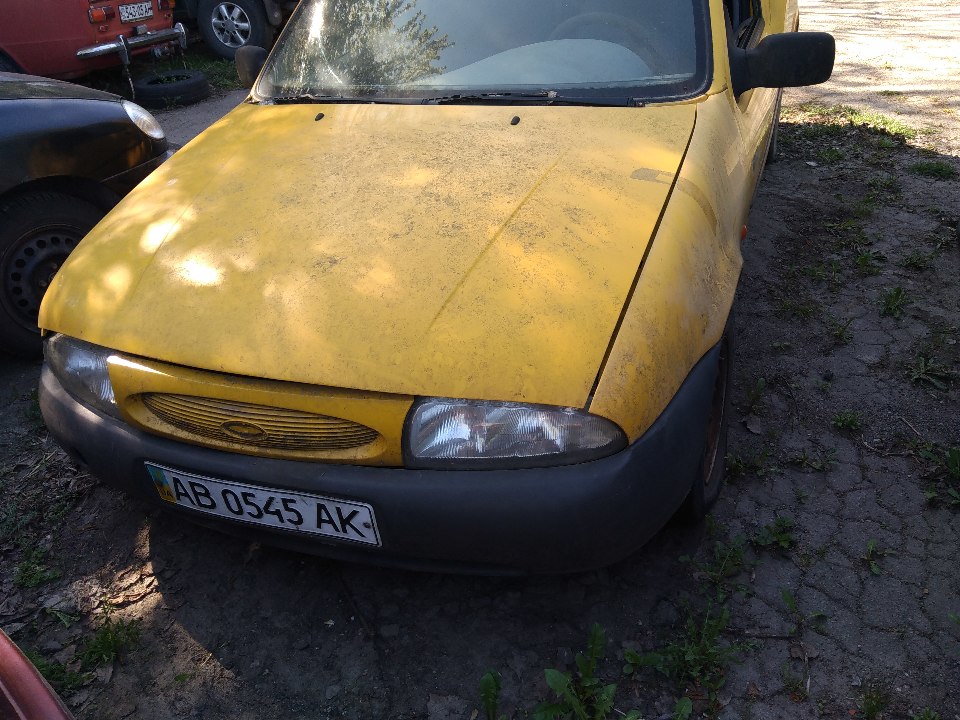 Автомобіль FORD FIESTA COURIER D, 1998 року випуску, жовтого кольору, № кузова WF03XXBAJ3WU55879, ДНЗ АВ0545АК. Подряпини по всьому салону, обшивка салону в незадовільному стані, брудна та порвана, провисає проводка, відсутні килимки, комплектація автомобіля ( АКБ, домкрат, аптечка). Відсутні: автомагнітола, динаміки. Пошкоджені пластикові елементи обшивки салону та панелі приладів, багажний відсік в незадовільному стані, розукомплектований, ліве скло розбито. Вм'ятини, корозія, відколи, сліди відновлювальних робіт, ознаки фарбування по всьому кузову. Автомобіль не заводиться, відсутні логотипи виробника, ДНЗ деформовані, знос гуми 90 %. В наявності один ключ та номерні знаки. Технічний паспорт відсутній. Об'єм двигуна встановити не є можливим так як технічний паспорт відсутній.