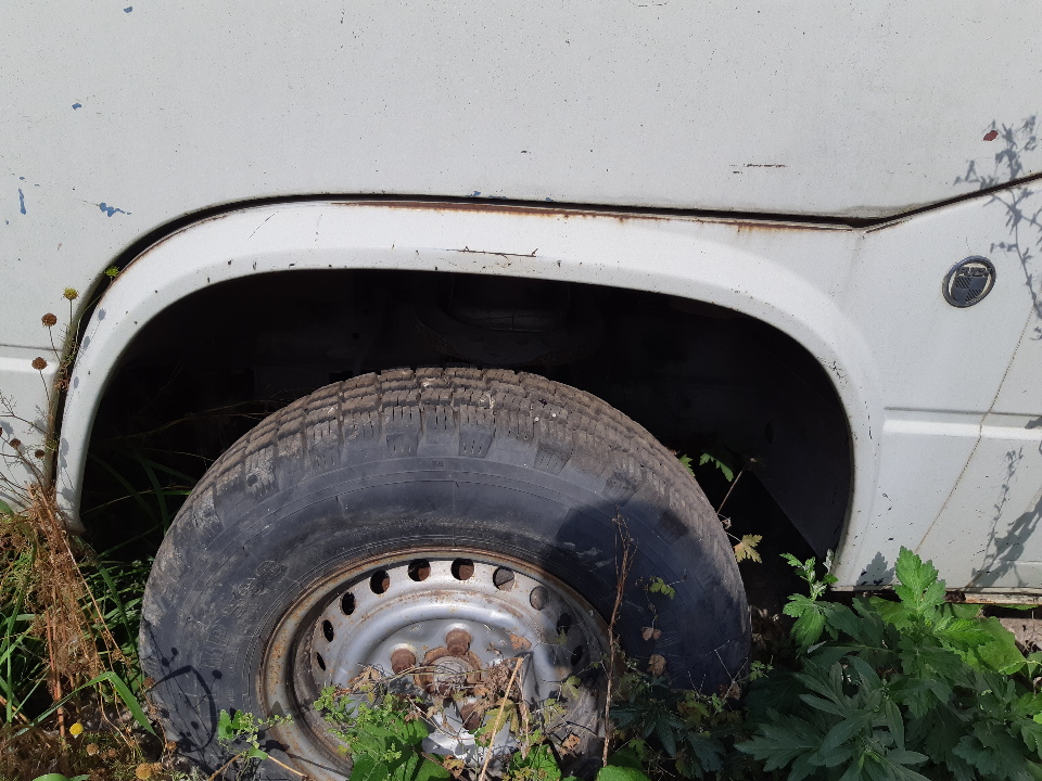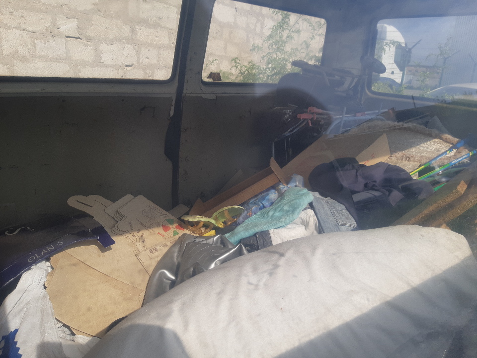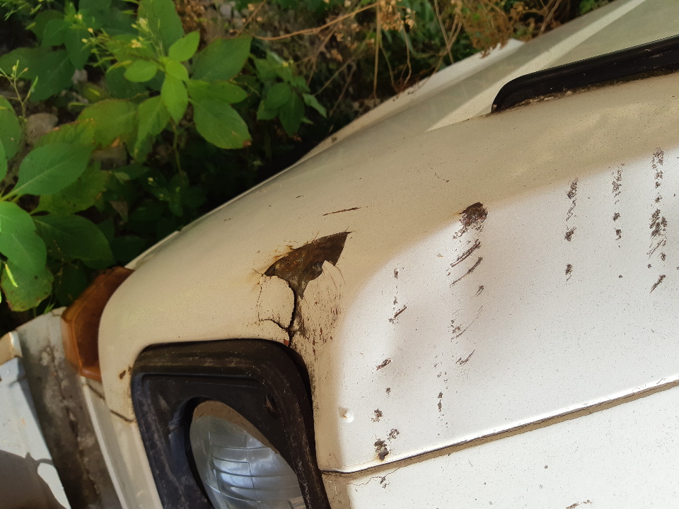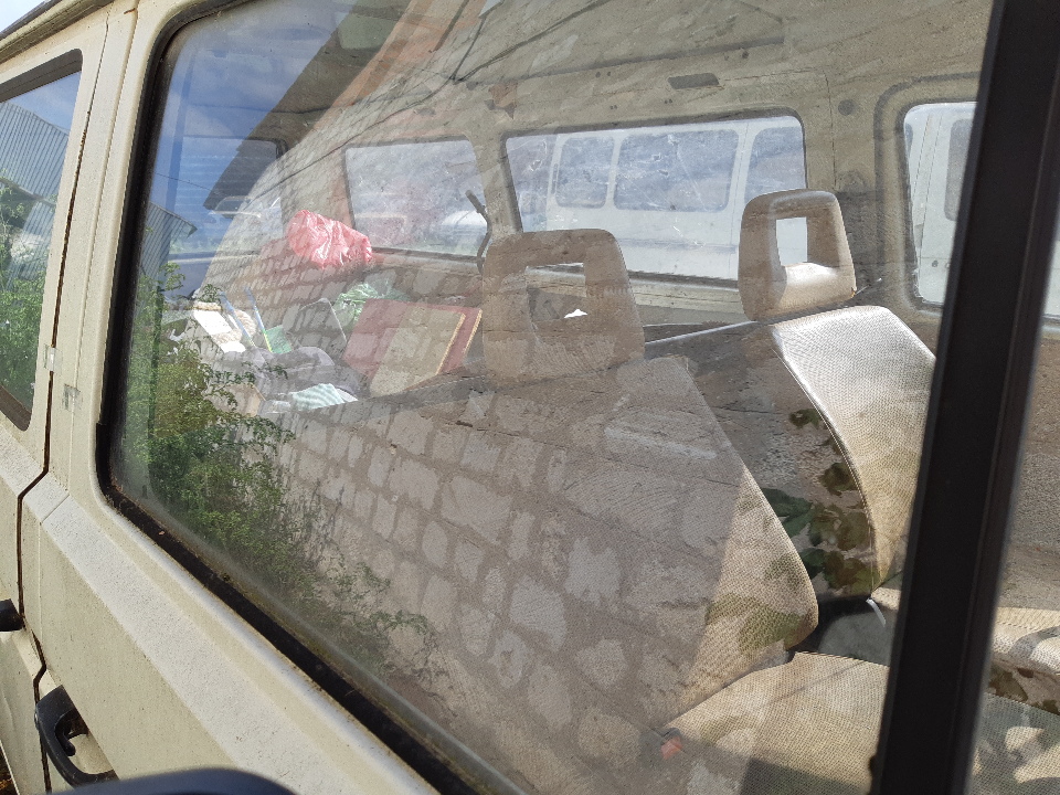 Ключі та реєстраційні, документи відсутні. Автомобіль зачинений, на кузові наявна значна корозія, відколи лако-фарбового покриття, вм'ятини передніх та задніх крил, боків, розбите праве дзеркало заднього виду, відсутня частина внутрішньої обшивки салону, значно пошкоджена обшивка сидіння водія, шини коліс прийшли в непридатний стан.