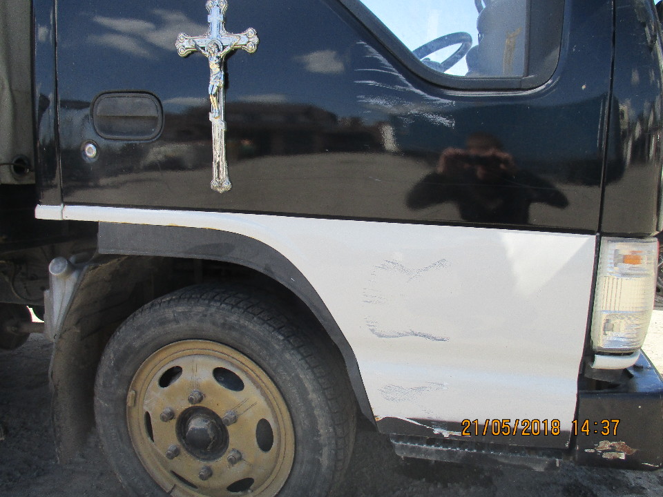 Подряпини на правій дверці, бампері, по кузову наявні пошкодження ЛФП, корозія, салон забруднений, оббивка сидінь розірвана. Акумуляторні батареї несправні, тому встановити справність двигуна, його комплектуючих, КПП неможливо. Технічний паспорт відсутній, ключі в наявності. Відсутня автомагнітола та запасне колесо.