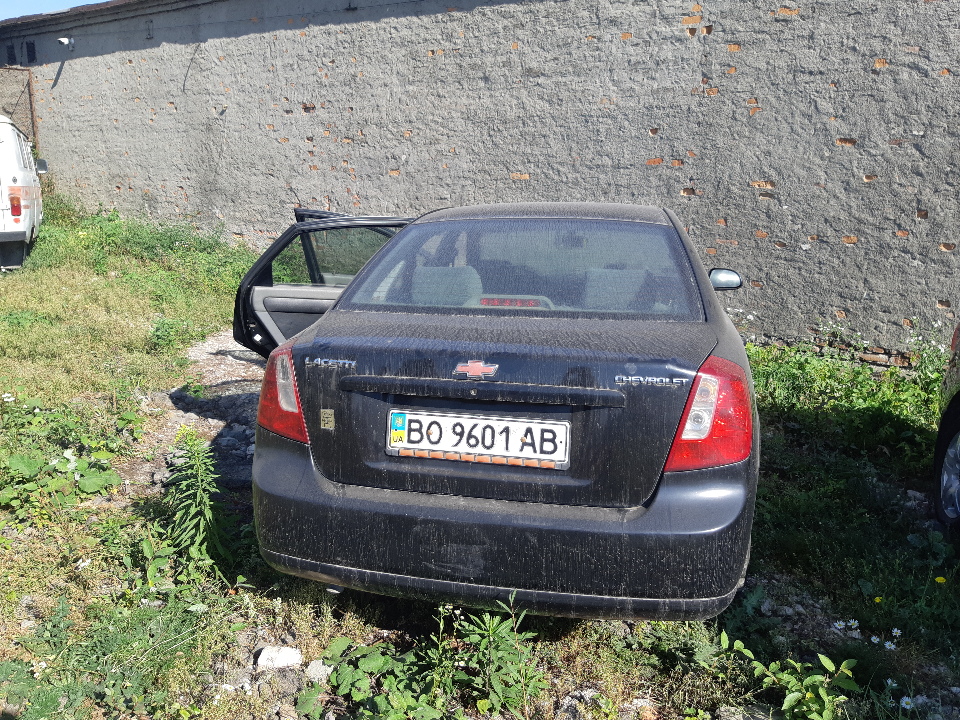 Транспортний засіб марки CHEVROLET Lacetti, 2005 р.в., чорного кольору, кузов №KL1NF196E6K275424, реєстраційний номер ВО9601АВ, легковий седан-В, бензиновим двигуном, об'ємом 1598. Без реєстраційних документів, з ключем запалювання. Пробігом 402631. Наявні тріщини на вітровому склі, задньому лівому стопі, передньому та задньому бампері. Наявні корозійні відколи покриття, подряпини, та дрібні вм'ятини на усіх елементах кузова, знос протекторів скатів. Комплектність вузлів та агрегатів не встановлювалась. Салон зношений, наявні подряпини на панелі приладів, забруднення обшивки салону та сидінь. Сидіння водія із значним пошкодженням оббивки.