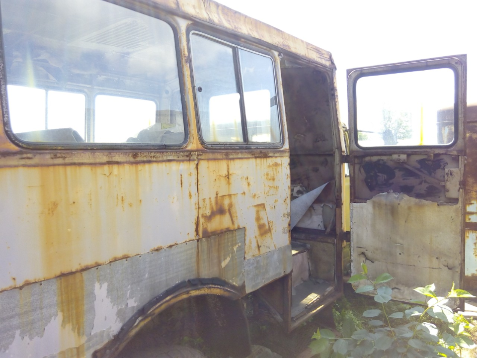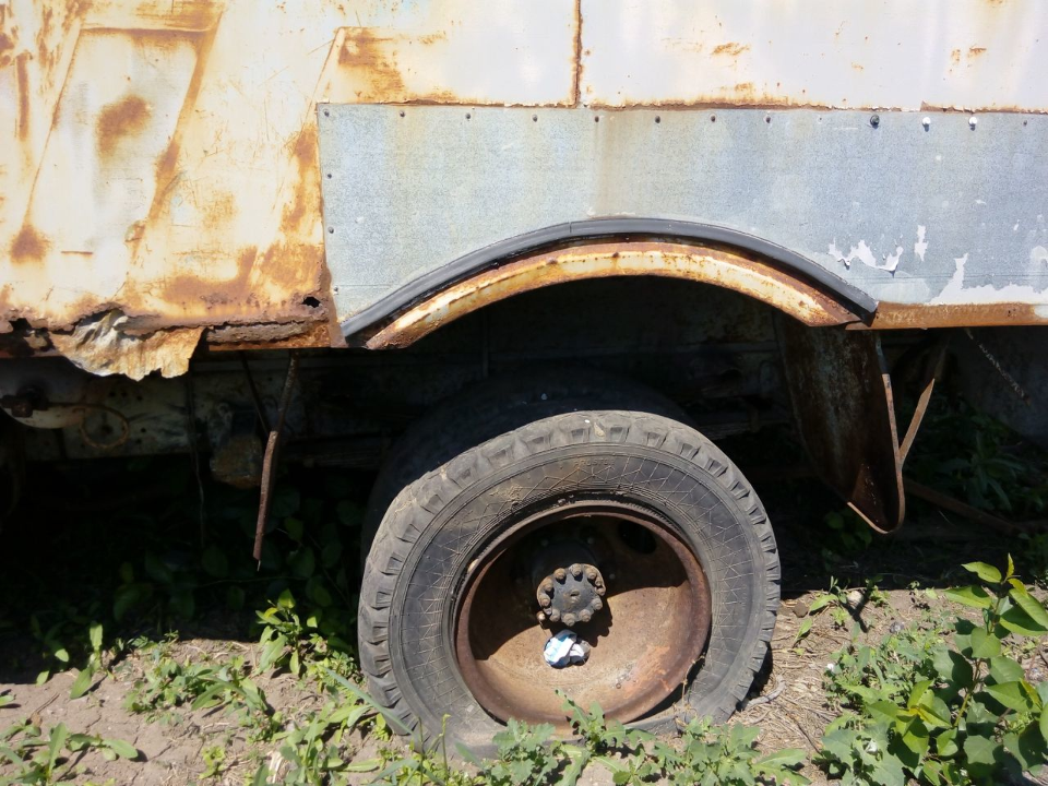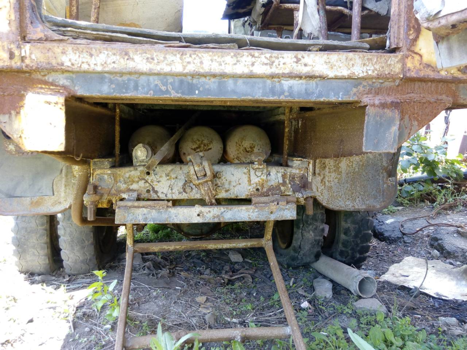 Кузов автомобіля пошкоджений вогнищами корозії, пошкоджена електропроводка і пневмосистема, шини зношені, пошкоджене ЛФП. Техпаспорт в наявності у зберігача.
