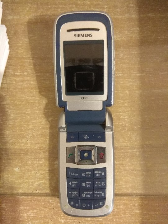 Мобільний телефон марки "SIEMENS" GF75, корпус сіро - синього кольору, в неробочому стані.