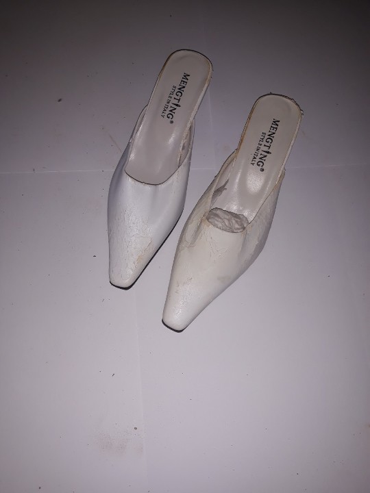 Туфлі жіночі, білого кольору, з довгим носком, б/в, одна пара.