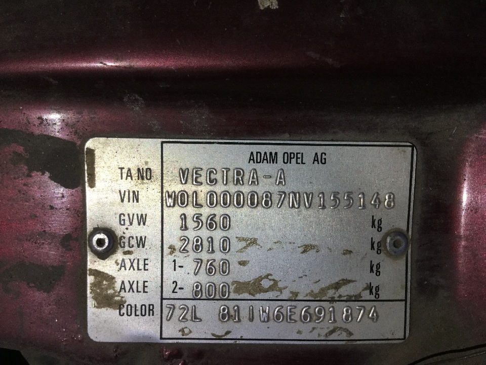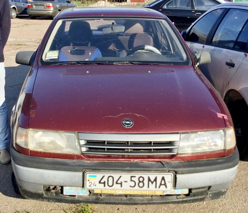 Автомобіль Opel Vectra 1.6 I, червоного кольору, 1992 року випуску, реєстраційний номер 40458МА, ідентифікаційний номер (VIN) WOL000087NV155148, об'єм двигуна 1598 см. куб. КТЗ має пошкодження кузову: капот, деформація без пошкодження лакофарбового покриття, оббивка салону (даху, стояків боковин, полиць, оббивка сидінь, пофарбування кузова, скло). Автомобіль не на ходу у незадовільному стані. Перевірити показники одометра під час огляду було неможливо. Свідоцтво про реєстрацію транспортного засобу та ключі відсутні.