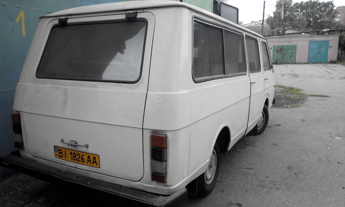 Мікроавтобус пасажирський РАФ 2203, 1992 р.в., ДНЗ ВІ1826АА, тип кузова - СІD, білого кольору. На момент огляду КТЗ в роботі не перевірявся, виявлено пошкодження ЛФП складових кузова.