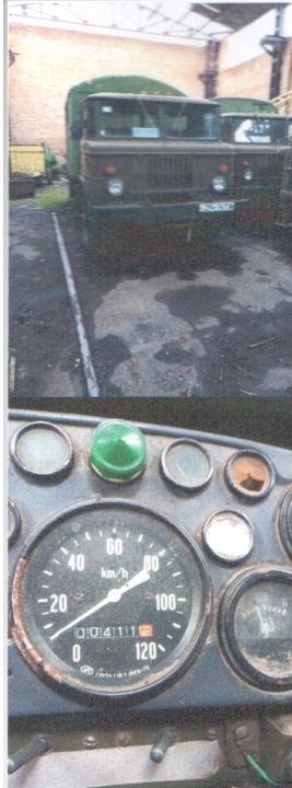 Транспортний засіб марки ГАЗ 66, 1989 р.в., ДНЗ: 29476ТА, № шасі б/н, зеленого кольору, об'єм двигуна - 4254 см. куб., тип кузова - фургон. Відомості про номер кузова, вид пального - відсутні. Пробіг - не встановлено. Наявні дефекти: пошкодження кузова, оббивка салону (даху, стояків боковин, полиць, дверей, оббивка сидінь, пофарбування кузова, скло). Транспортний засіб на ходу і його технічний стан відповідає строку експлуатації. Відомості про наявність/відсутність технічної документації та ключів відсутні.