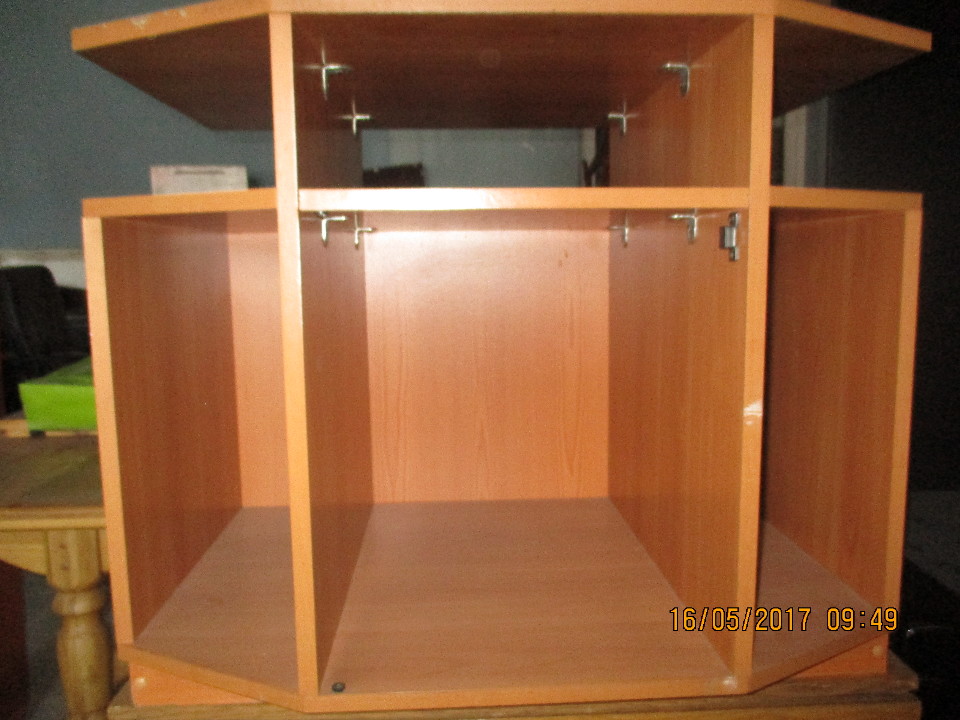 Тумба під телевізор бежевого кольору.