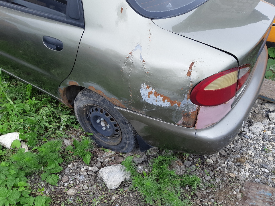 Кузов автомобіля має знайчні механічні і корозійні пошкодження: сколи, потертості, відставання лакофарбового покриття. Значні пошкодження поверхні кузова, корозійні ушкодження крил, колісних арок, дверей, колісних дисків, механічні ушкодження лівого заднього крила, бамперів. Шини непридатні до застосування.